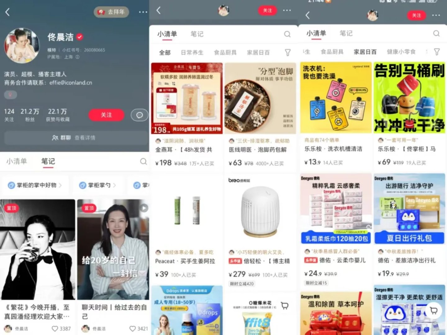 当前,@佟晨洁的小红书账号粉丝已达21.2万,据其小清单显示,她的带货品类涵盖了日常养生、健康小零食、家居厨具、居家运动等产品。此外,在参加完《再见爱人》后,佟晨洁作为演员的资源也明显得到了提升,参演了多部热播剧集,开启了自己的博客“佟晨洁的‘正常生活’”,节目中频频与《再见爱人》相关话题联动。