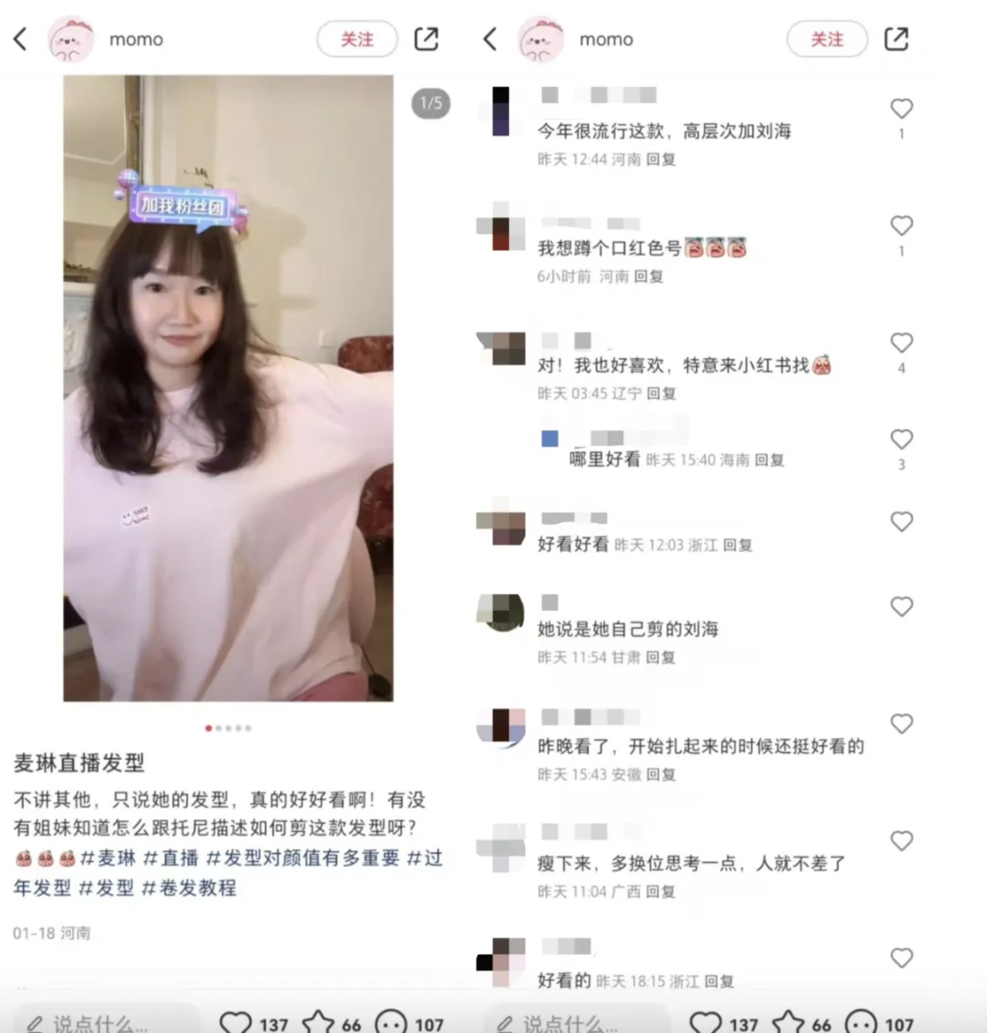 同时,在小红书站内,也不乏网友表示,被种草了麦琳的发型、卫衣、口红色号等,也说明了其在日用品带货上的潜力。