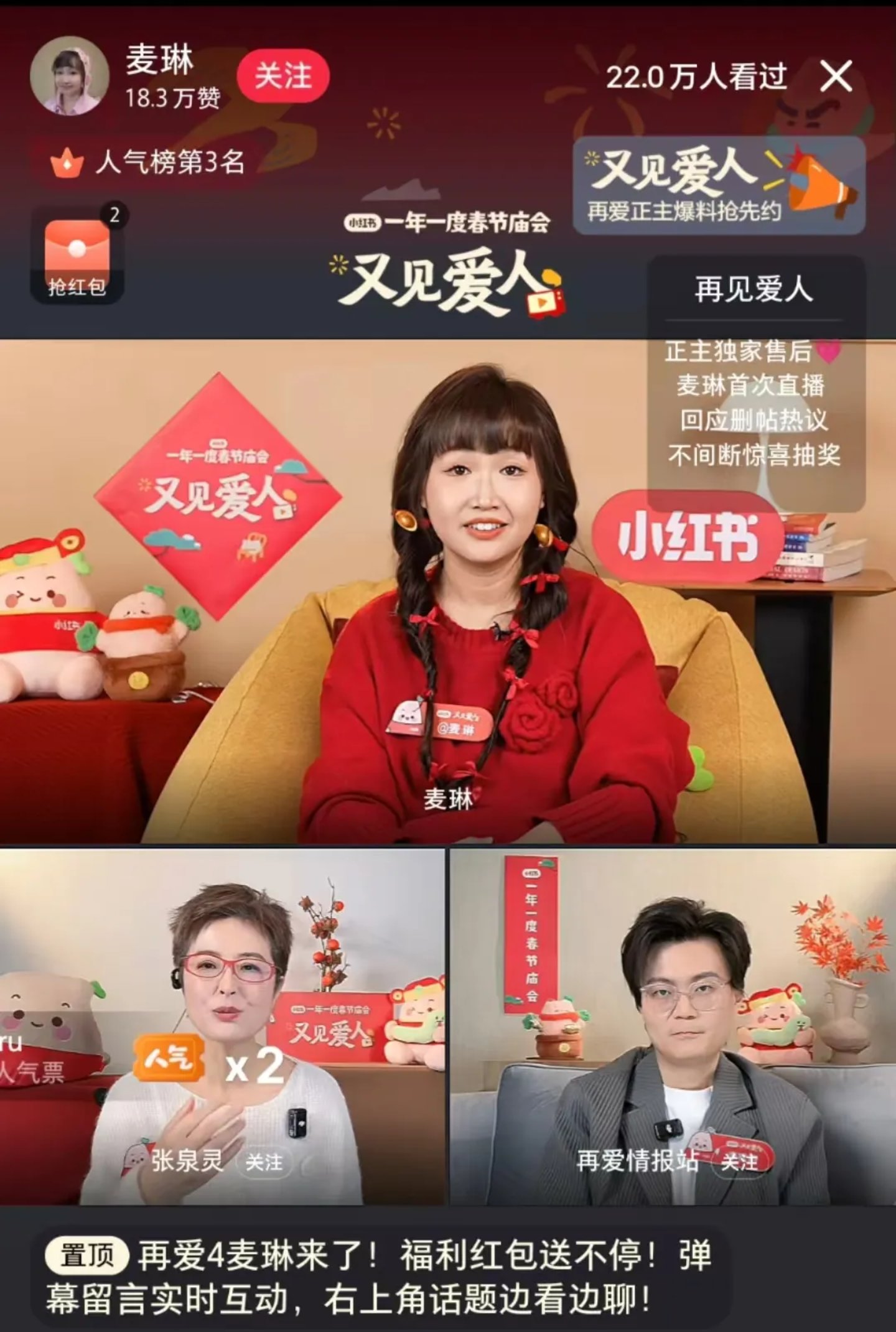 1月20日晚间,《再见爱人4》综艺最具争议的嘉宾“麦琳”现身小红书《又见爱人》直播间,与张泉灵、李松蔚现场连麦互动。这场直播直接将麦琳送上热搜,“麦琳商业价值远超李行亮“话题下,除了表示“被玩弄”的网友,不乏支持之声,肯定其表达能力、自强决心和乐观态度。