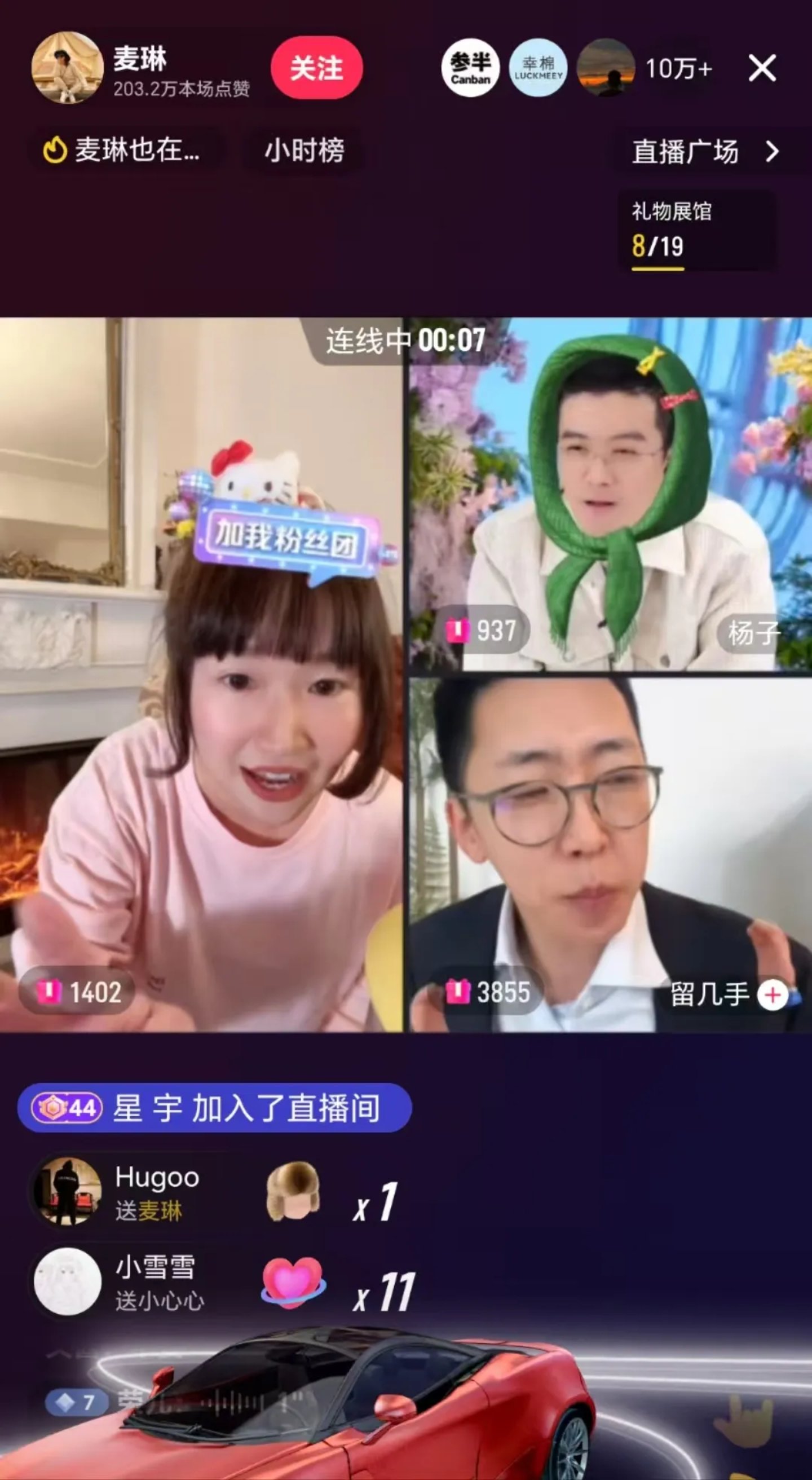 当晚开播的不止是留几手,有不少网友在杨子直播间疯狂刷屏让他跟麦琳在一起。而后,“麦琳”也匆忙开启了直播。麦琳一开播,瞬间直播间冲进十万加人气,榜一大哥是李行亮,在随后与杨子、留几手的三人直播连麦PK中,在麦琳一口一句“好的哥”的附和中,迎来了铺天盖地的礼物打赏。