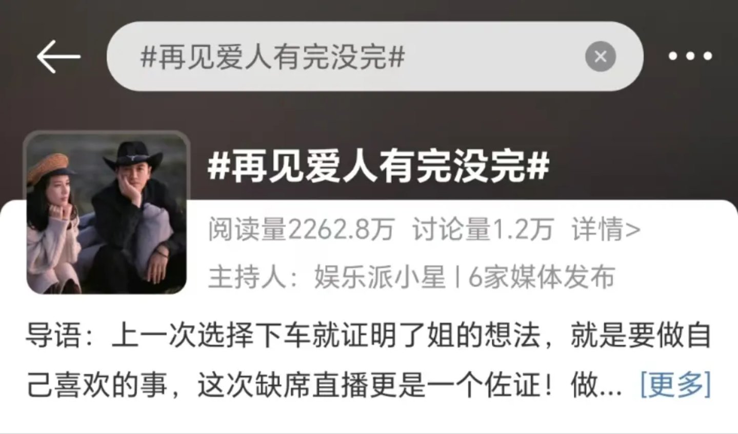 但与此同时,由这档综艺打来的争议性舆论也在吞噬着嘉宾的口碑和声誉。《再见爱人》系列到底有完没完?大众对后续商业化的接受度又有几何?