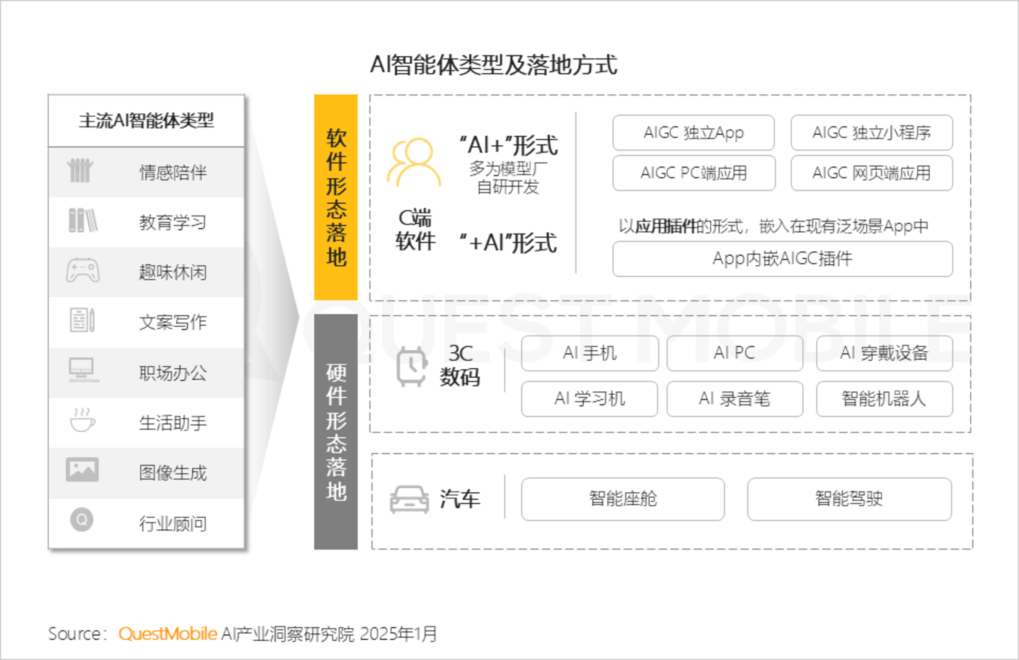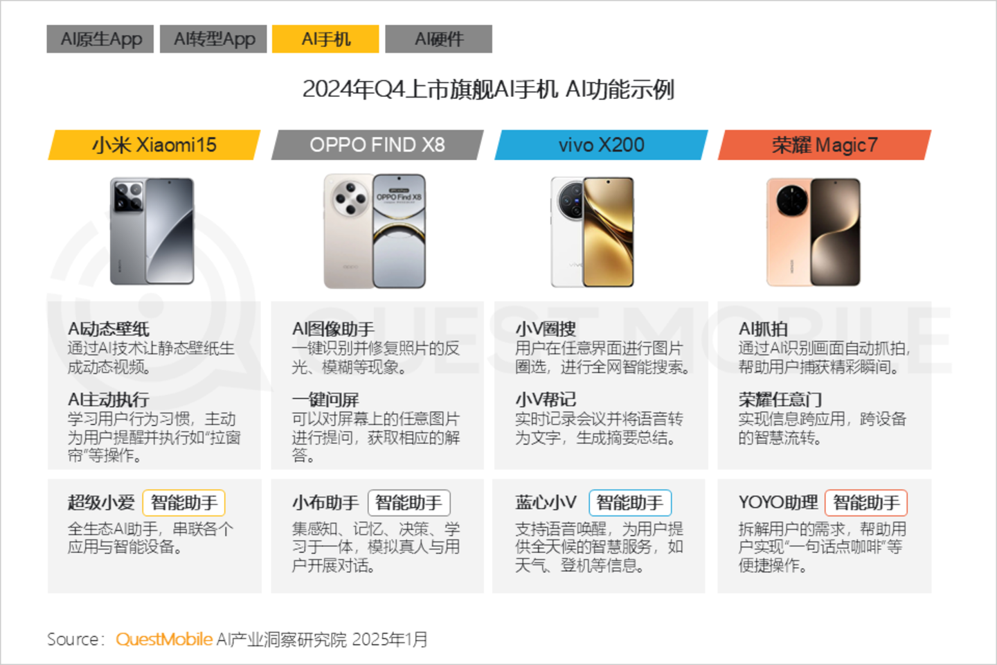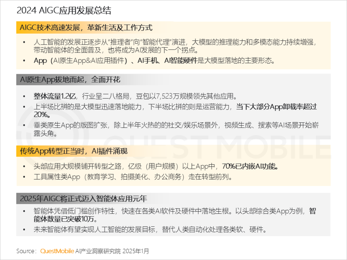 除了AI原生APP,各行业APP内AI插件、智能手机内AI智能助手、智能硬件唤醒AI软件,等等,都已经全面开花,必然会在2025年迎来更多爆点。
