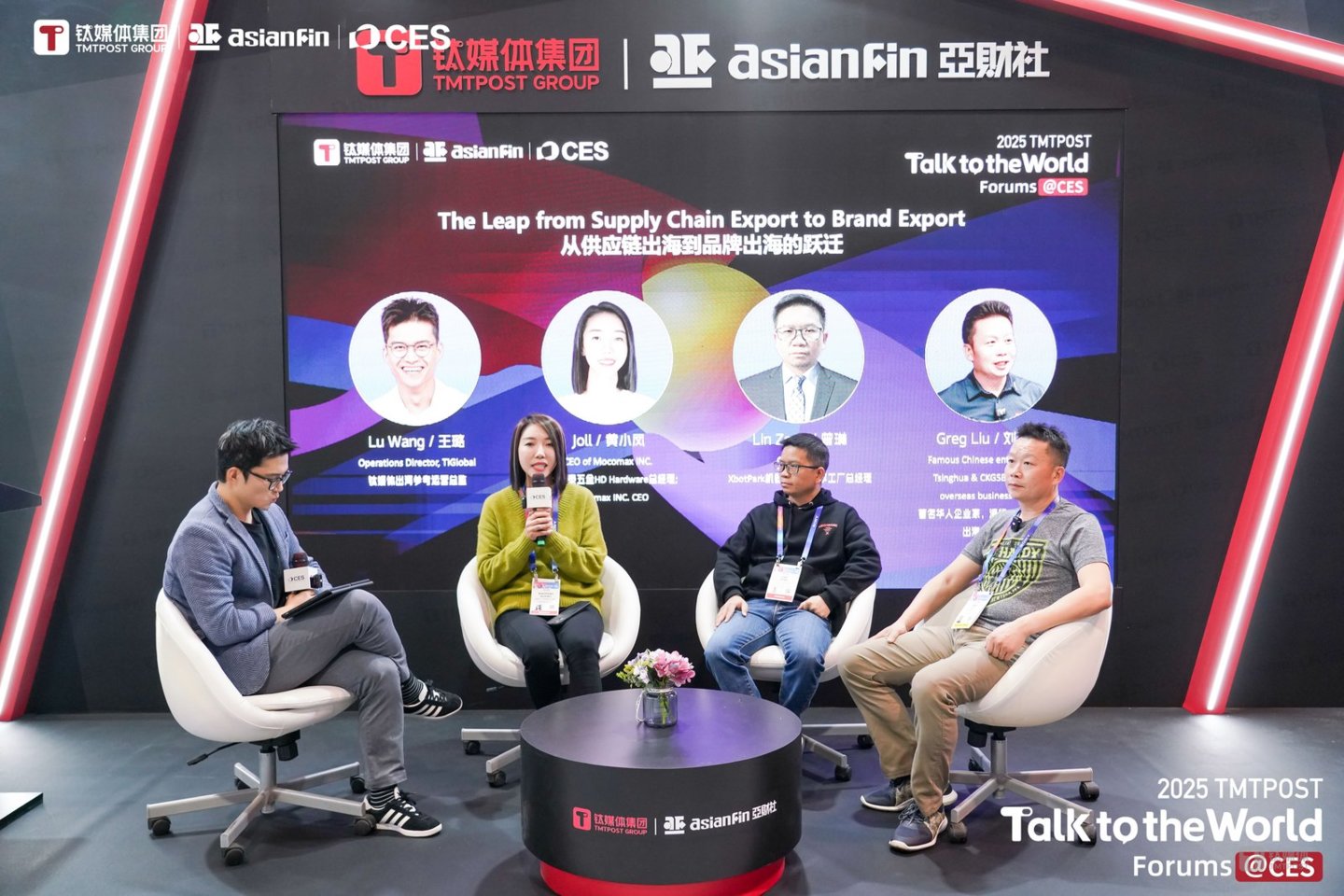 钛媒体CES2025 「Talk To the World Forums·对话世界」系列论坛上,钛媒体策划「从供应链出海到品牌出海的跃迁」主题圆桌,钛媒体出海参考运营总监王璐、与XbotPark机器人基地共享工厂总经理曾琳、广州华泰五金HD Hardware总经理/Mocomax CEO 黄小凤、天音出海/Telling创始人兼CEO刘国瑞三位嘉宾,就该主题展开探讨。