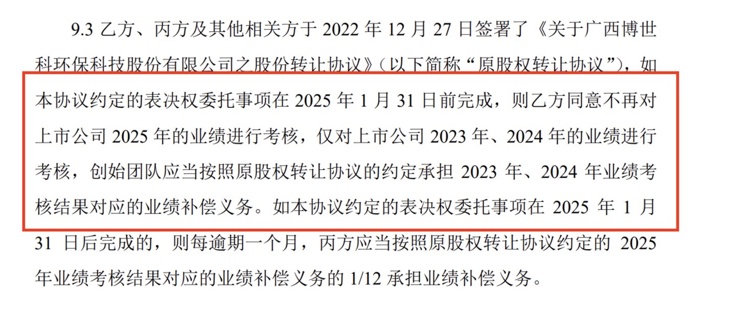 根据宁国国控与博世科创始团队的约定,如果可以在2025年1月31日完成表决权委托,即将合计22.95%的表决权全部委托给广西自治区国资委,那么宁国国控愿意放弃对博世科2025年业绩进行考核。