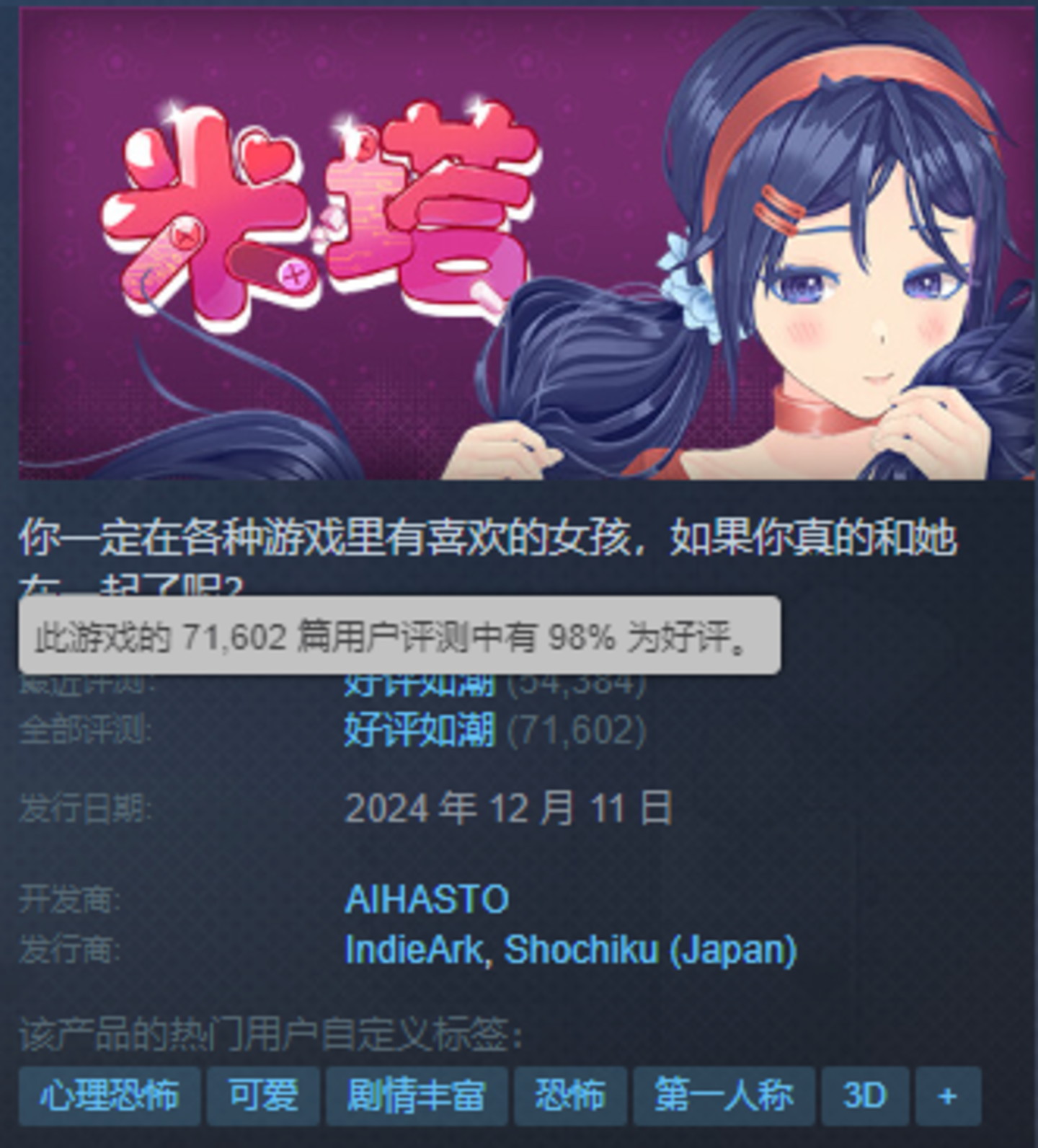 两人,865天,Steam评论总数超7万。难以想象的超高评价,令《米塔》已落定年末爆款。