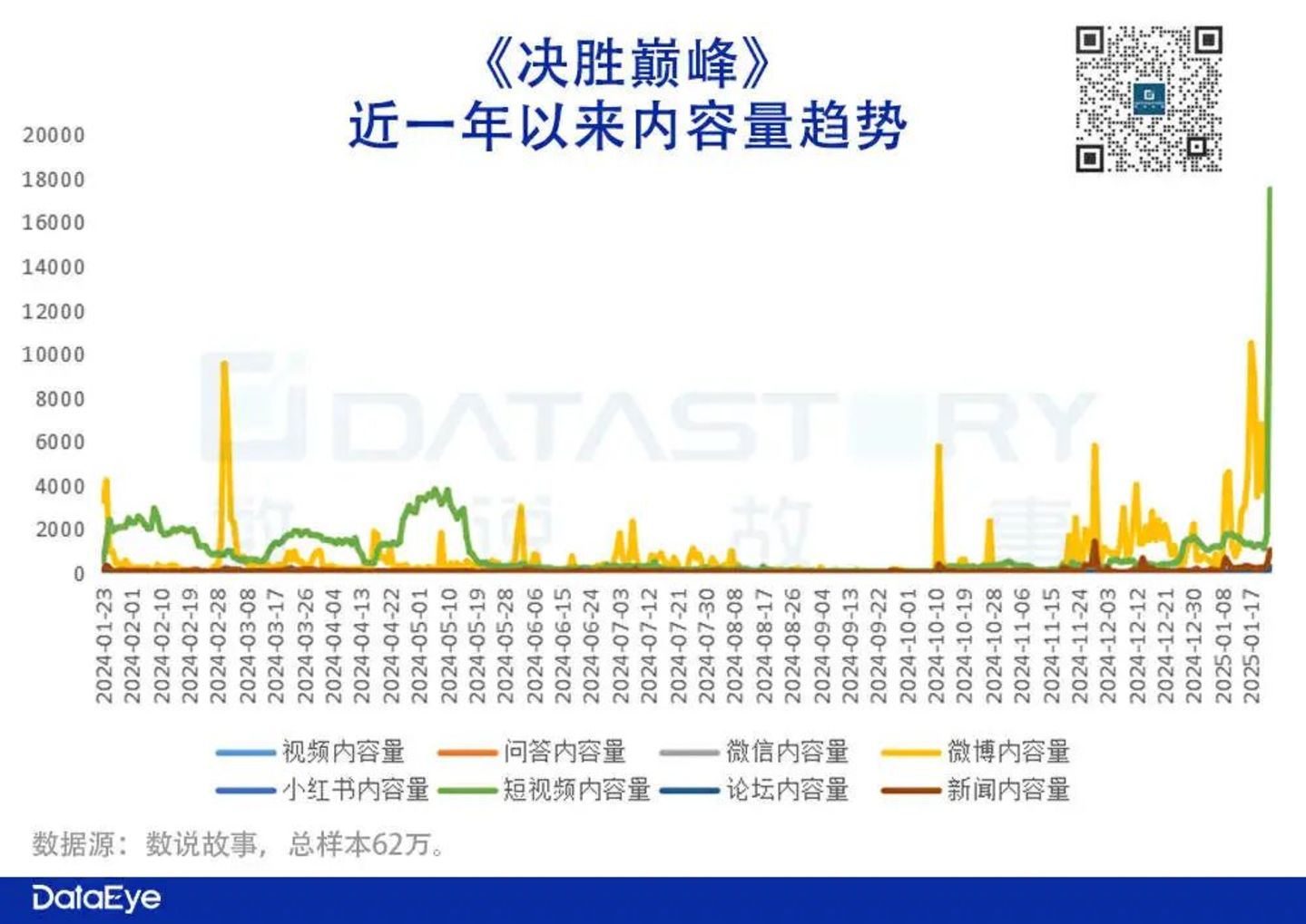 内容条数方面:截至1月23日下午,近一年以来国内全网内容条数约为62万条,其中短视频平台内容最多,其次是微博。而短视频内容多来源于达人营销和“UGC内容”,微博平台则相对常规,官方内容传播上贴合产品时间线以及主要产品核心竞争力(电竞)作为内容输出。