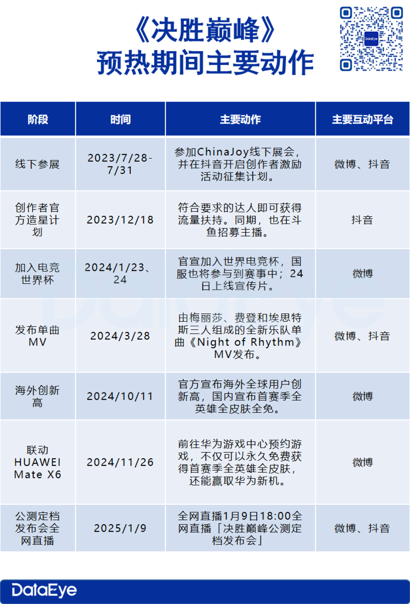 DataEye研究院认为,《决胜巅峰》作为“海归”MOBA游戏,产品预热造势侧重于大流量平台进行传播,一方面与抖音深度绑定扩大传播面积;另一方面就是如上文内容所示,将用户转移到官方账号,从而有助于后续私域流量池运营。
