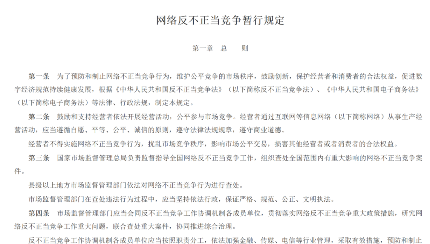 图源:《网络反不正当竞争暂行规定》