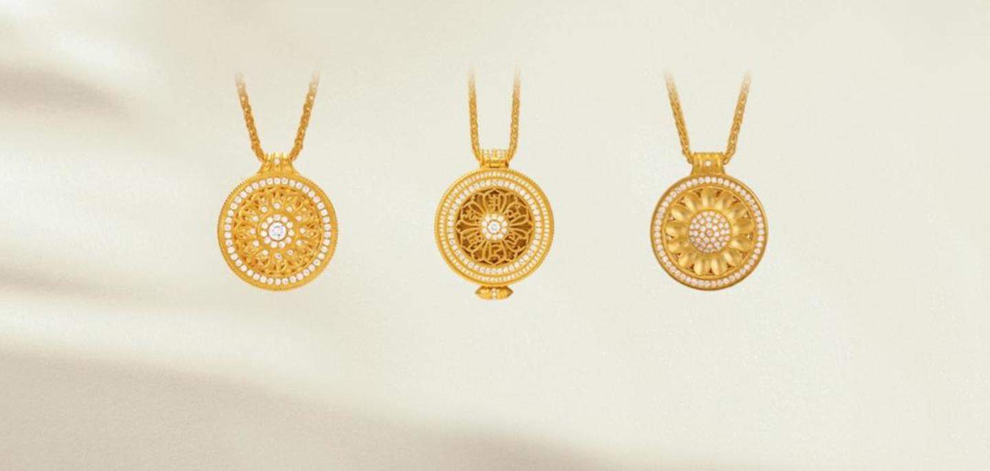 老铺黄金以古法手工金器作为品牌宣传点,相比于传统金饰品牌,它打破了按克价售卖首饰的惯例,而是选用一口价的形式售卖,平均克价更是超过千元,远高于市场平均金价。另外,老铺黄金每年几乎固定涨价两次,让产品有了超脱金价的品牌属性。其次,在选址上,老铺黄金目前仅有33家直营店,大部分都位于所在城市的核心商圈。产品设计上也加入了花丝、錾刻、锤揲、镶嵌等非遗手工技艺,并大量运用传统纹饰及宗教元素符号,通过金镶钻及宝石的组合搭配,为金饰增添了更多的奢侈品珠宝属性。