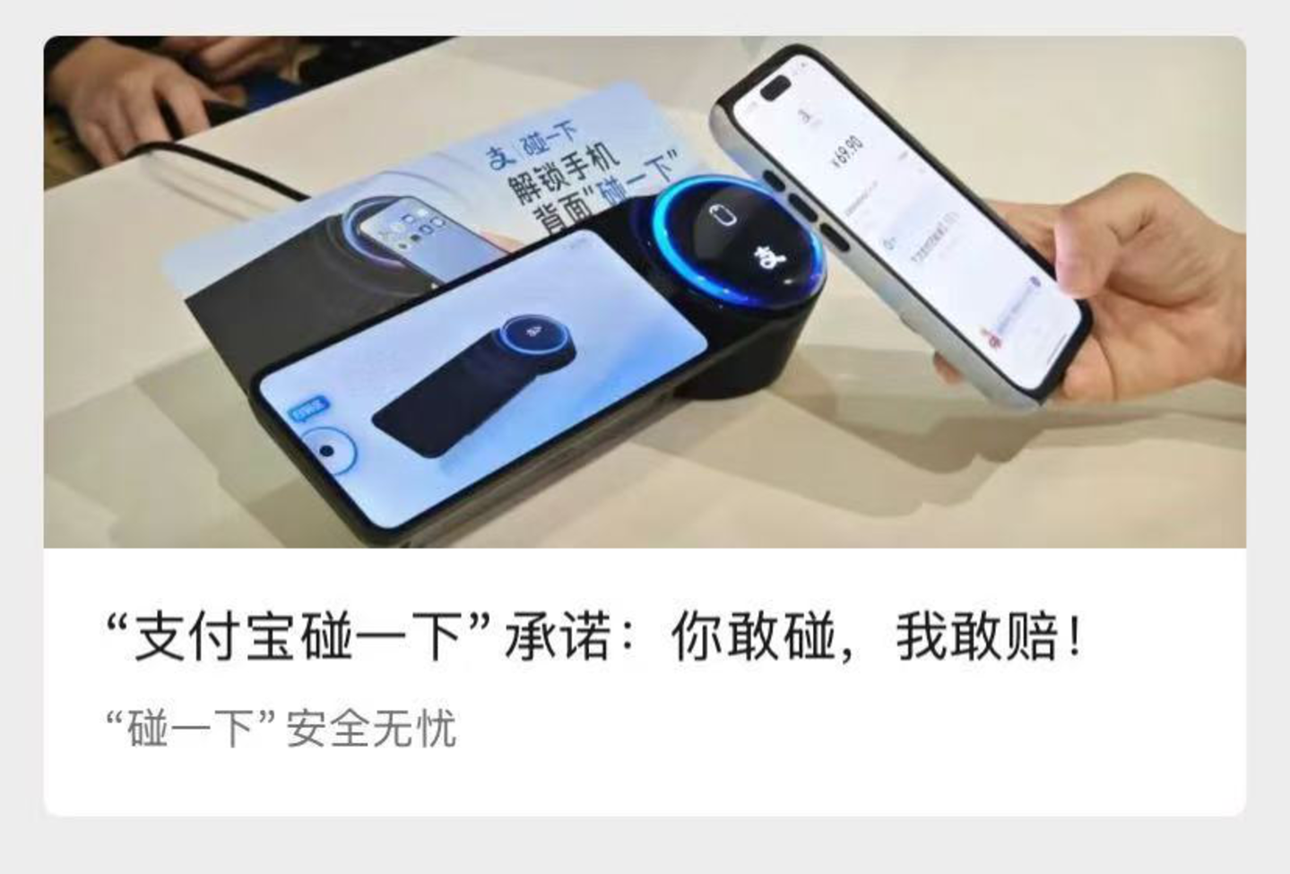 第三方网络支付刚出现的初期,为了去除网民的安全疑虑,支付宝曾在2005年提出过“你敢用,我敢赔”的口号。二十年后重新祭出“敢赔”的杀招,可见支付宝对“碰一下”的决心和支持力度有多大。