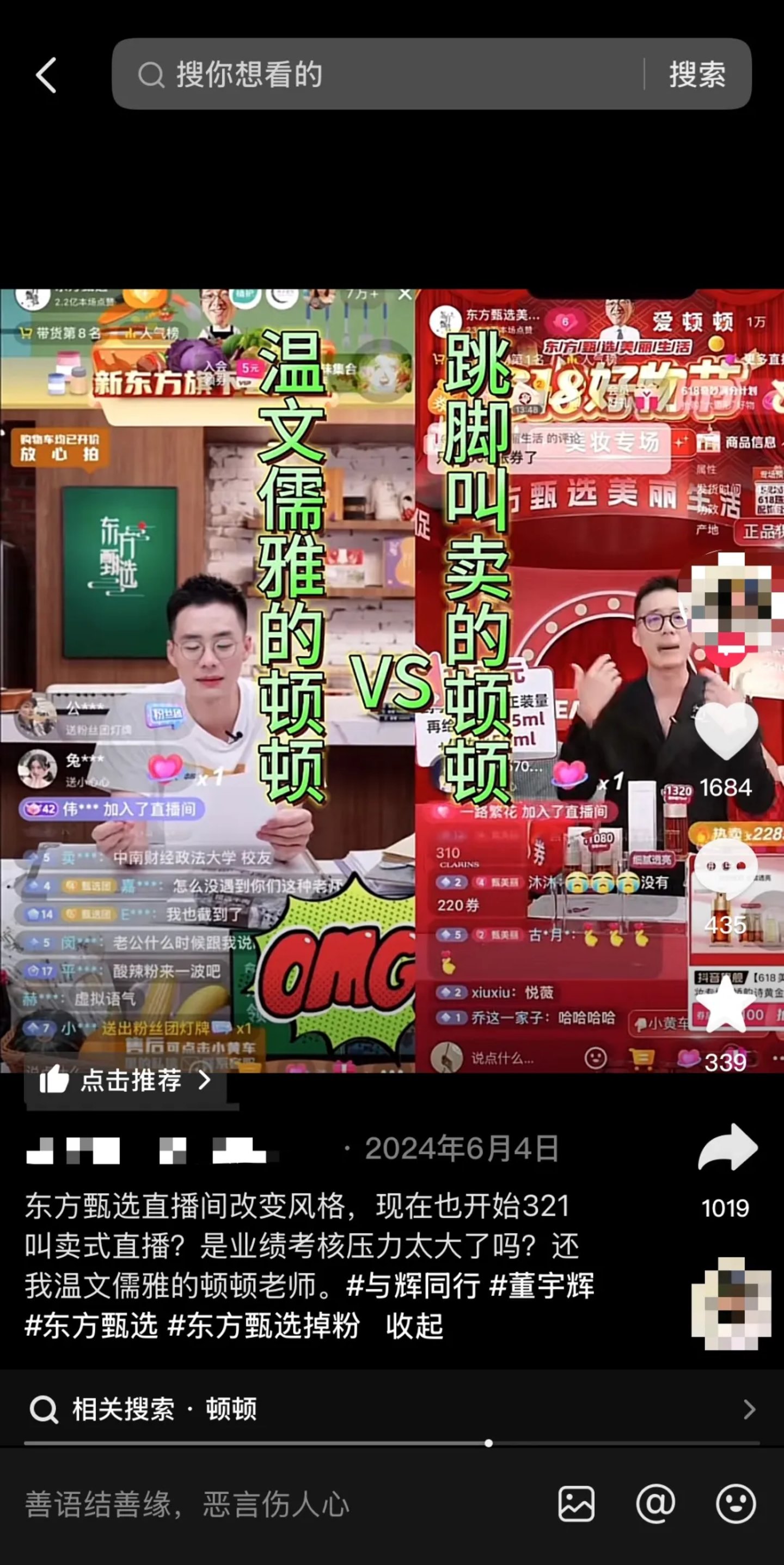 反观东方甄选,因为急于找到合适的直播风格,反而有点操之过急、乱了阵脚。