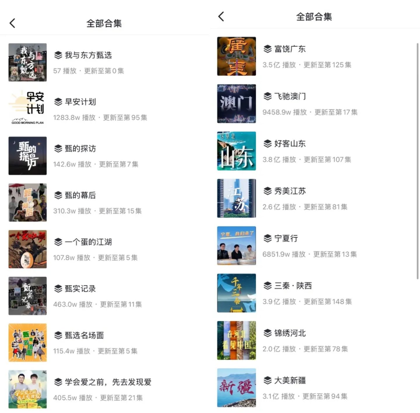 除了直播间的风格与节奏外,双方也在持续推出短视频内容,以强化自身的内容属性。去年下半年开始,东方甄选陆续上线了聚焦幕后素人——东方甄选沙漠牛奶牧场的饲料班长的《甄的探访》、以及揭秘直播间背后故事的《甄的幕后》、美食系列《食遍中国-川渝》等内容合集。