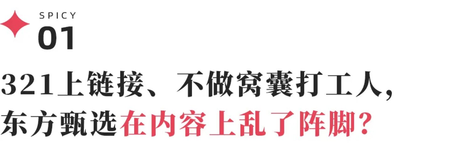 彼时虽然还未公开表态,但已经在幕后开启了切割,本身直播间也都搭起了各自的阵营。因此可以推测当时的东方甄选,已经在探索新的直播节奏了。或许当时的吆喝只是直播间的一次意外、或许是在外界的批评声中及时止了损,此后东方甄选在节奏上有所收敛,并没有走向“321上链接”的归宿。