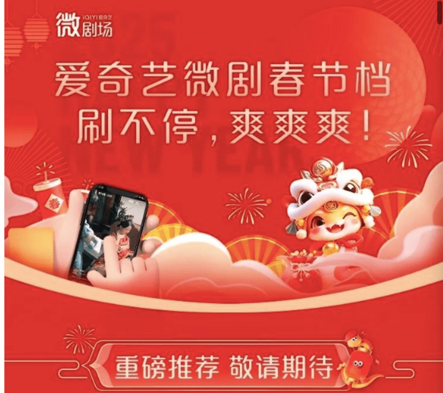 长视频侧,去年9月正式宣布推出“微剧场”和“短剧场”的爱奇艺近日全网首发了包含28部精品微剧的片单,开启其首个“微剧春节档”,将于1月28日(除夕)至2月4日(正月初七)期间陆续上线,并在APP上单独设立了固定专题入口。