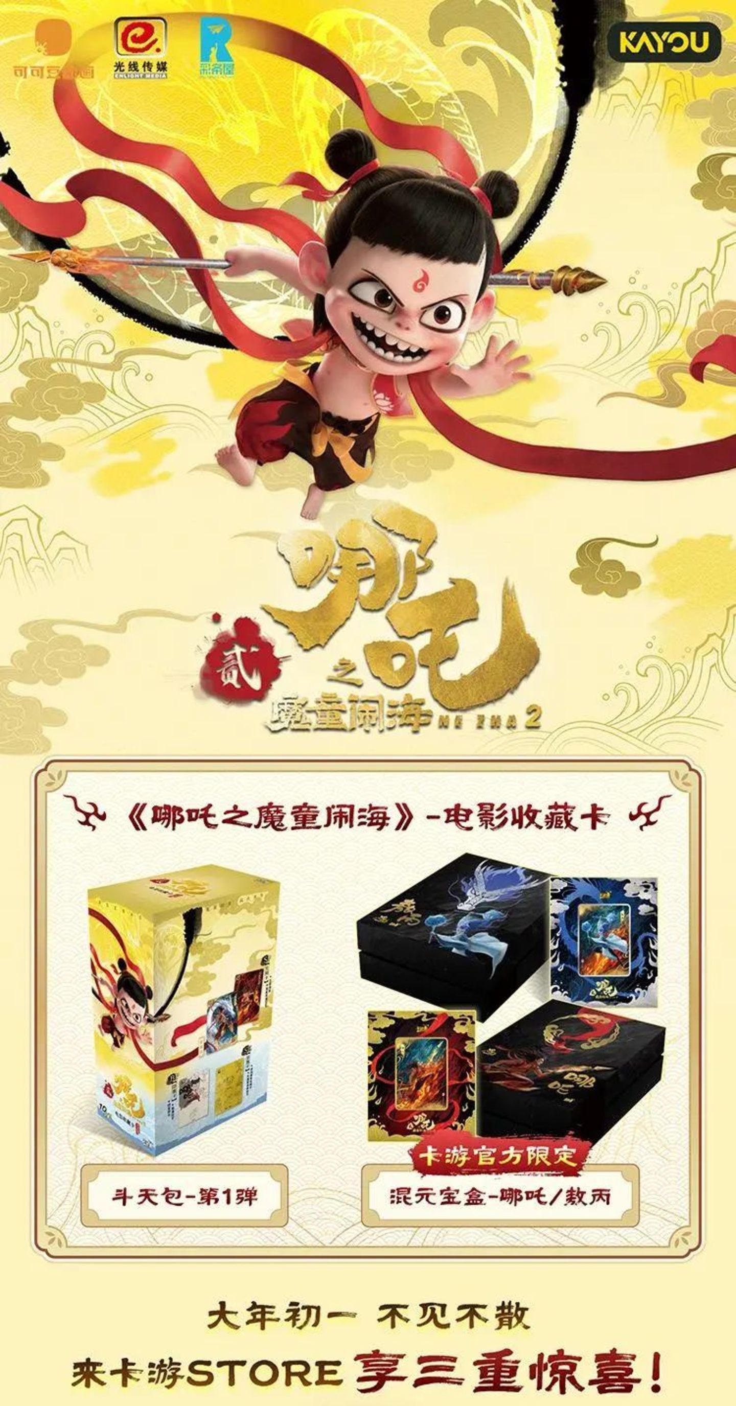 2023年,卡游曾推出过《长安三万里》的限量典藏卡,发行数量有限,更偏向线上销售,且并未与电影同步推出。而这次与《哪吒之魔童闹海》合作的产品能在电影首映日同步发售,合作规模更大,筹备时间更为提前,也说明电影IP版权方对此类合作的重视程度明显提高。