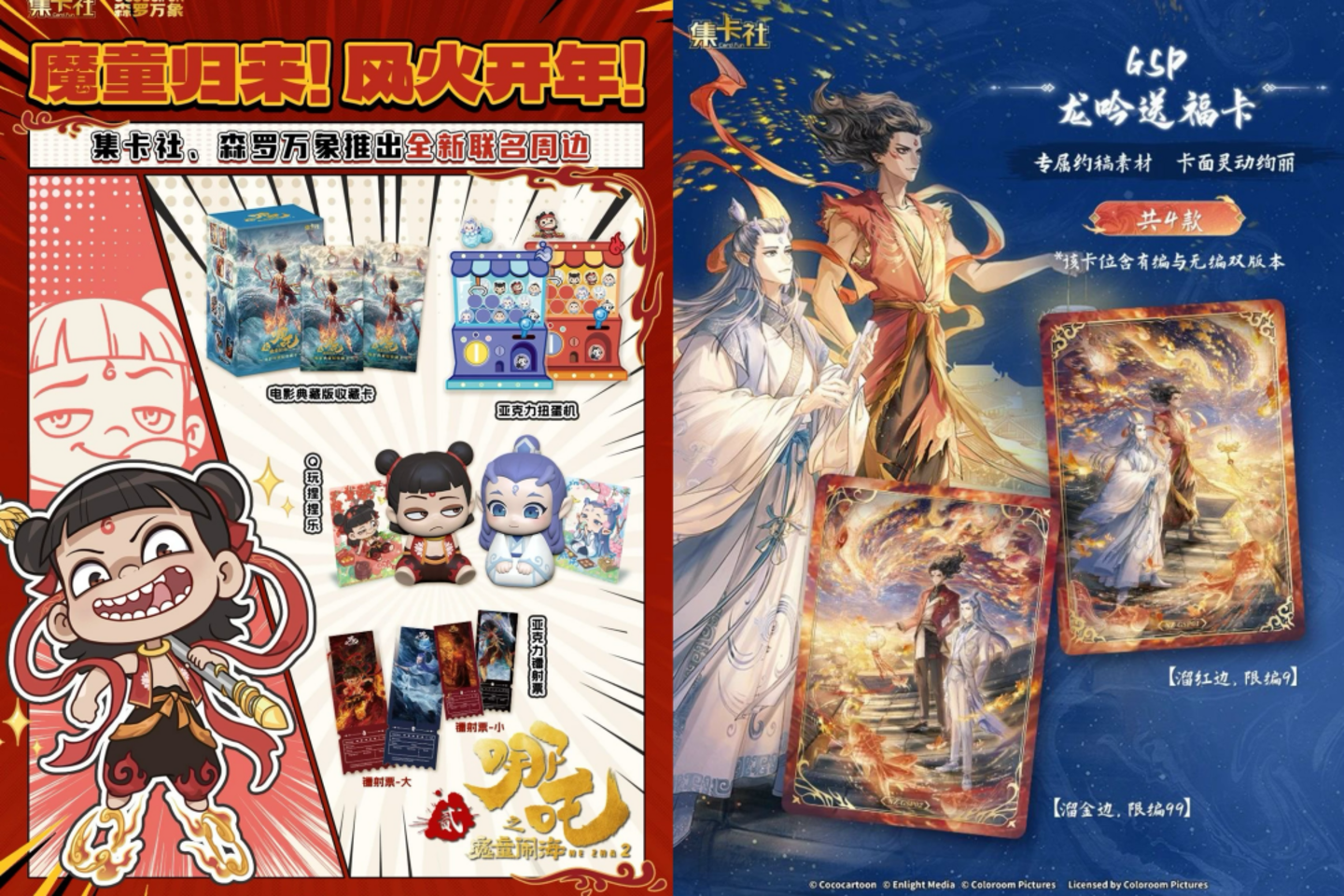 集卡社介绍,与国产电影进行合作时,除了考虑大档期为电影带来的票房热度,更重要的是,这些电影都带有与中国传统文化相关的国潮元素。“集卡社大部分用户具有二次元属性,他们会更喜欢国漫的谷子周边。之前的有兽焉、水浒传系列,与国画大师戴敦邦合作的《画猫》系列,都深受用户喜爱。这次与《哪吒之魔童闹海》的合作同样符合我们用户本身的喜好,以及集卡社弘扬中国传统文化的战略目标与未来规划。”