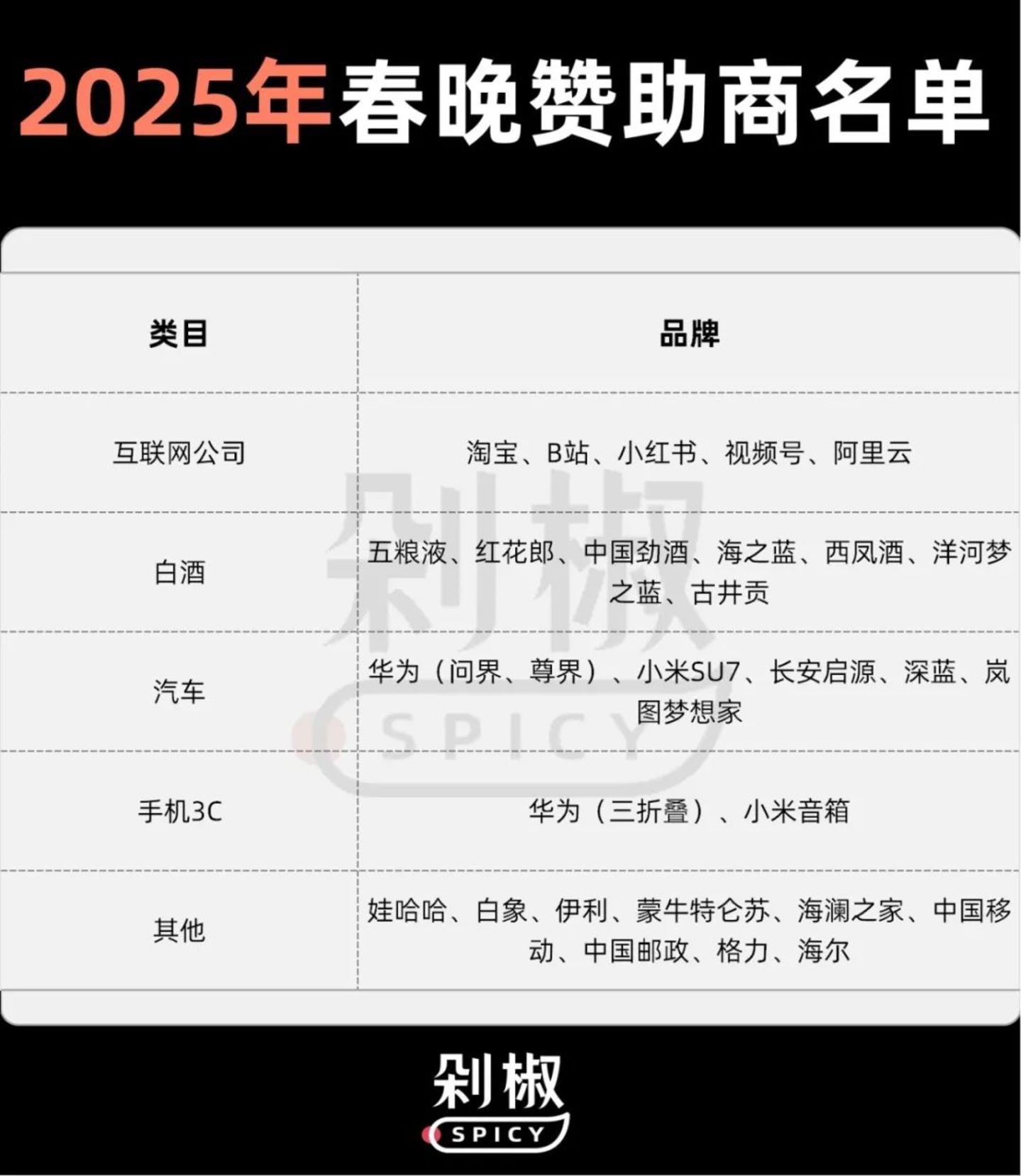 如果没有新的行业涌现,或者出现新的爆发式增长点,或许春晚赞助的整体格局会保持几年的稳定。