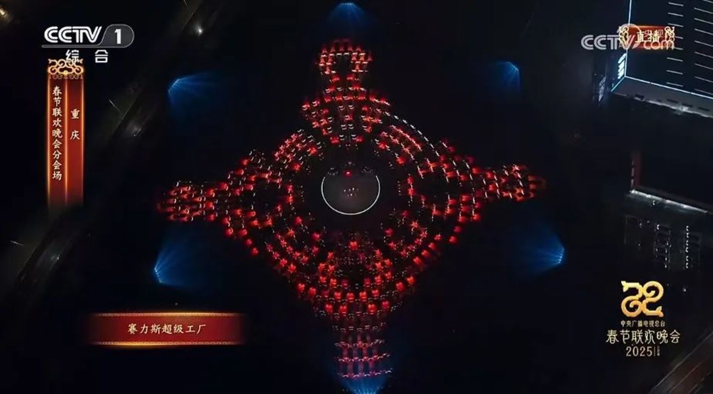 华为的露出形式十分多样,最令人印象深刻的无疑是在重庆分会场,在赛力斯超级工厂里,780辆问界M9围着舞台拼成一个中国结,排面拉满,足够震撼。而在西安分会场,两辆问界M9直接开上舞台,恐怕是本届春晚舞台上最大的实物植入。