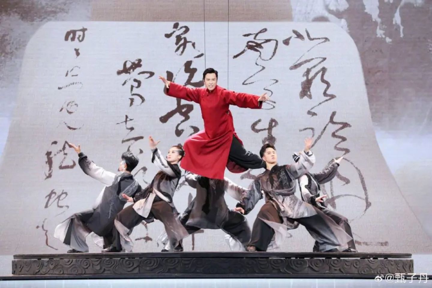 甄子丹表演过程中,镜头下方还飘过了字幕,提醒观众整个舞台的技术支持来源。