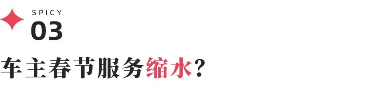 与此同时剁椒观察到,春节期间车企的“营销”动作更多集中在车主服务层面,例如在春节自驾回乡途中提供充电优惠政策,限时赠送智驾服务、提供更好的道路援助服务等。小米、极氪等品牌门店打出春节不打烊的口号,用一些优惠政策吸引消费者进店。