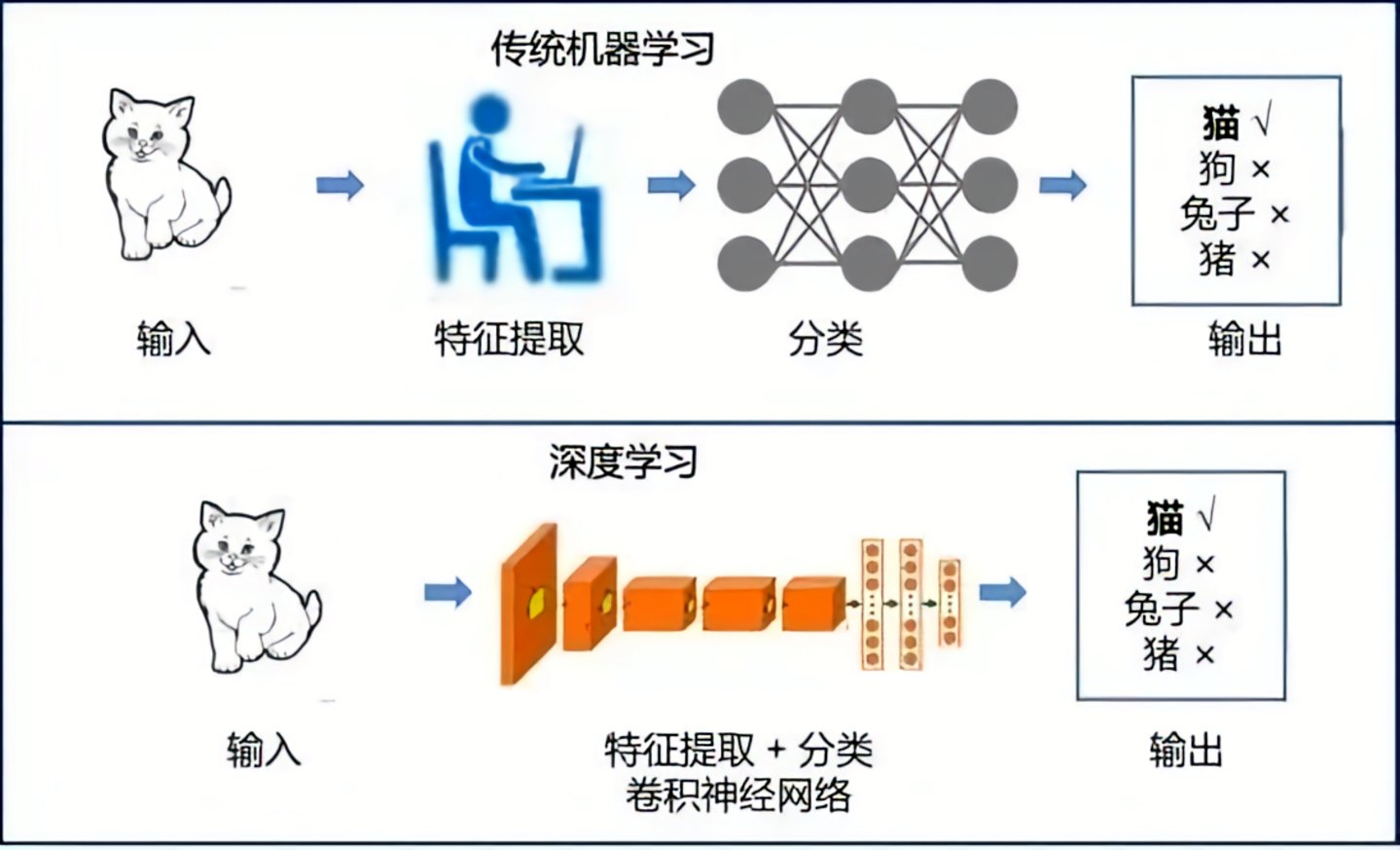让机器学会学习,实际是训练它先掌握人类的先验知识,然后让机器自己学会分析,最好能自己研究出新知识(生成式AI)。
