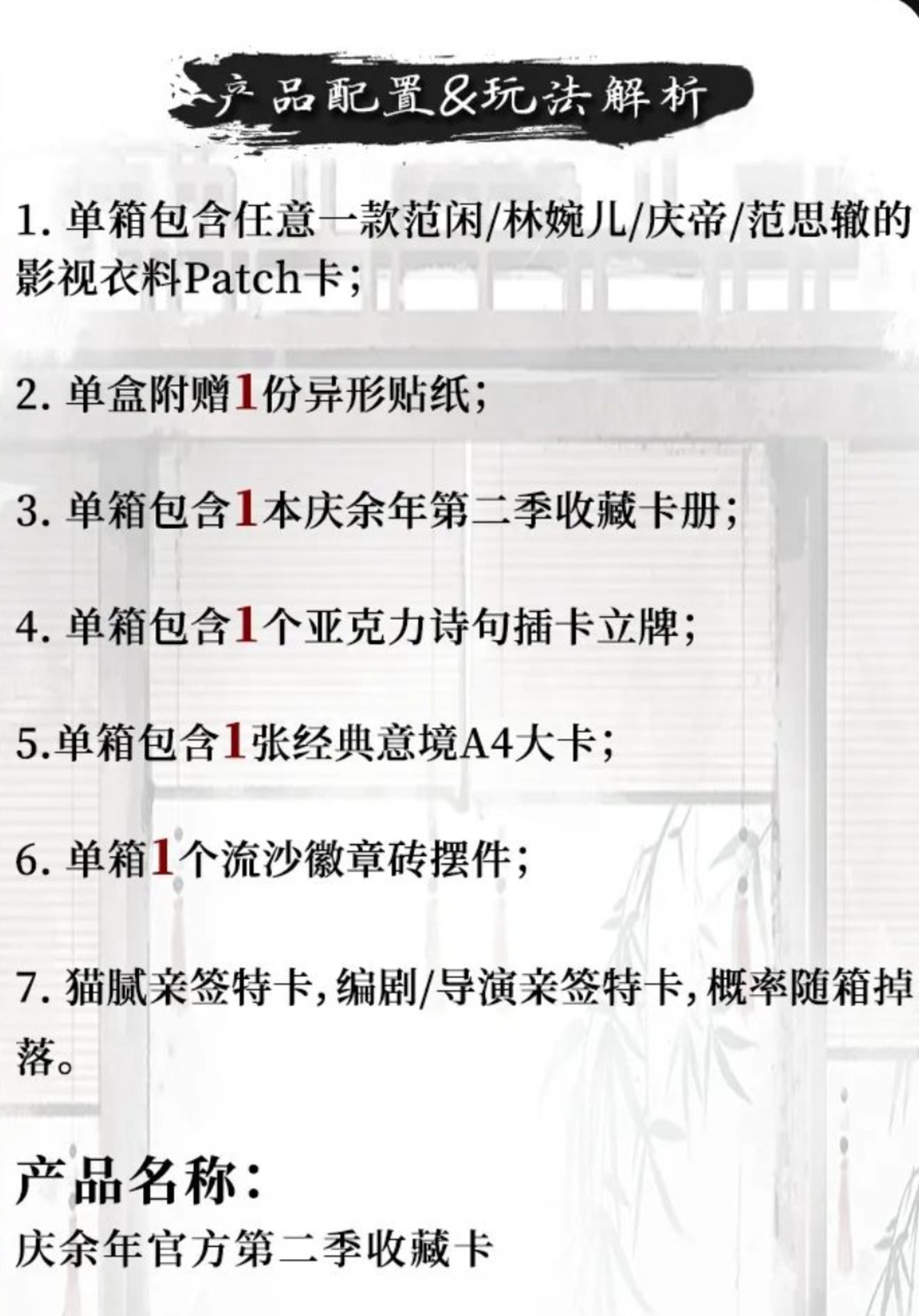 《庆余年》算是影视小卡的佼佼者,卡牌售卖主要基于IP效应而非单纯的粉丝效应,据了解,很多购买《庆余年》小卡的消费者甚至都没有看过剧,小说粉丝也是重要的消费者组成部分。同时,Hitcard在卡牌设计时,也更针对庆余年的IP粉丝,并没有只针对剧版,推出了包括戏服Patch卡、联名特卡、猫猫卡等特别卡牌,并邀请原著作者猫腻、画师眠狼等亲签。