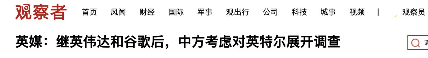 继谷歌、英伟达之后,中国考虑对英特尔展开新的调查。