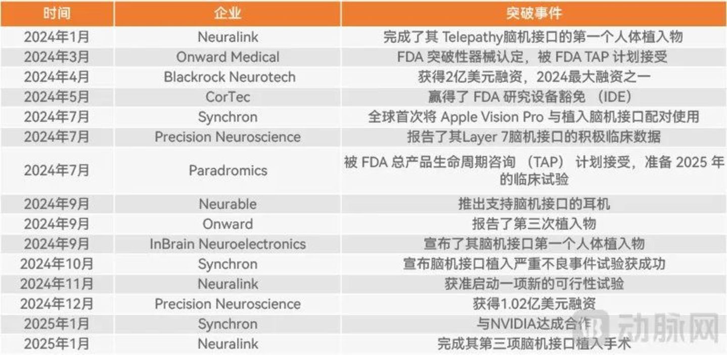 近一年国外脑机接口赛道主要动态(动脉网制图)