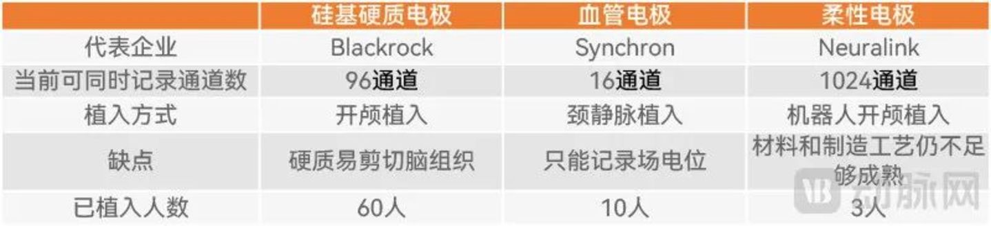 主要的植入式电极技术对比(动脉网制图)