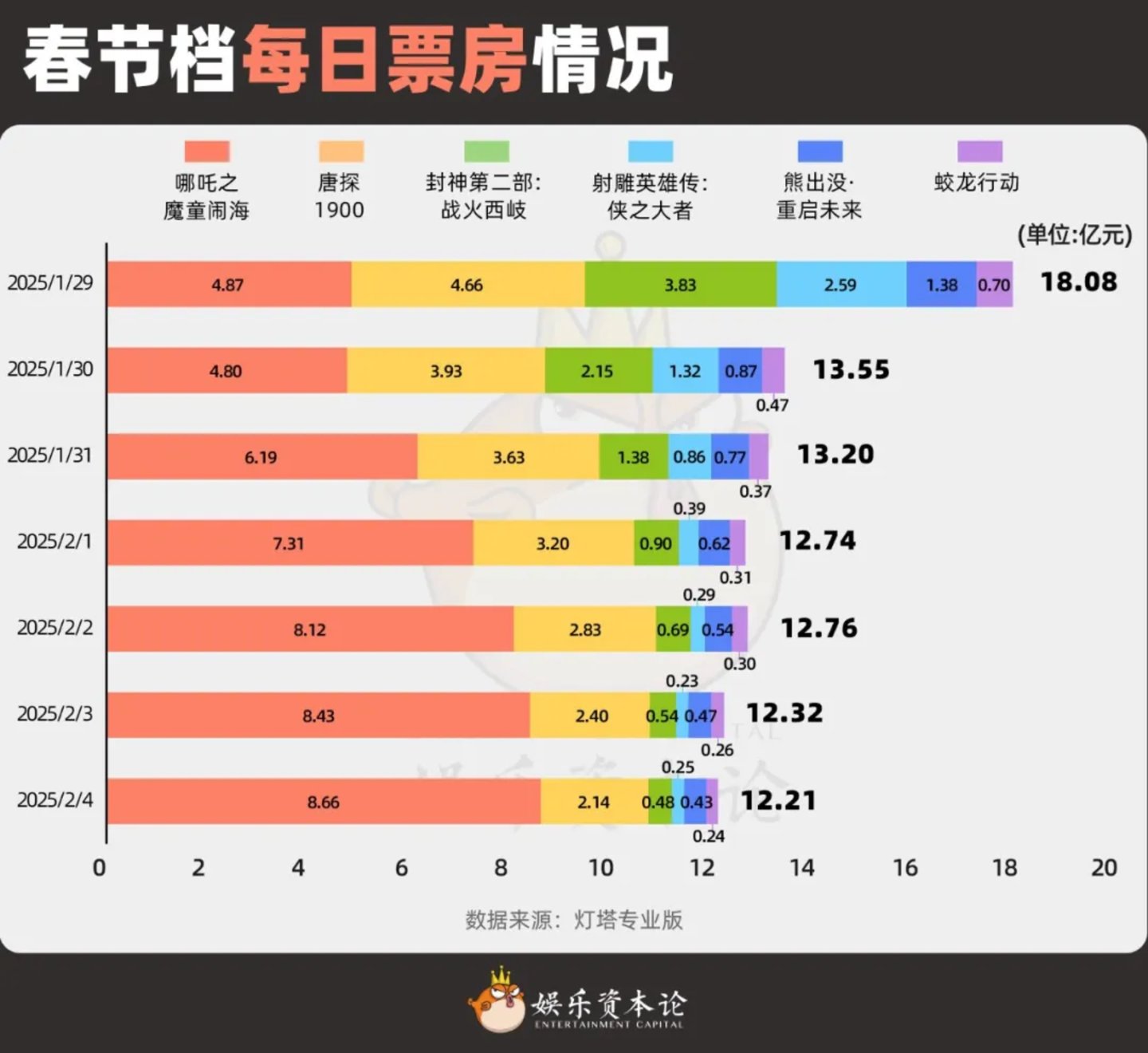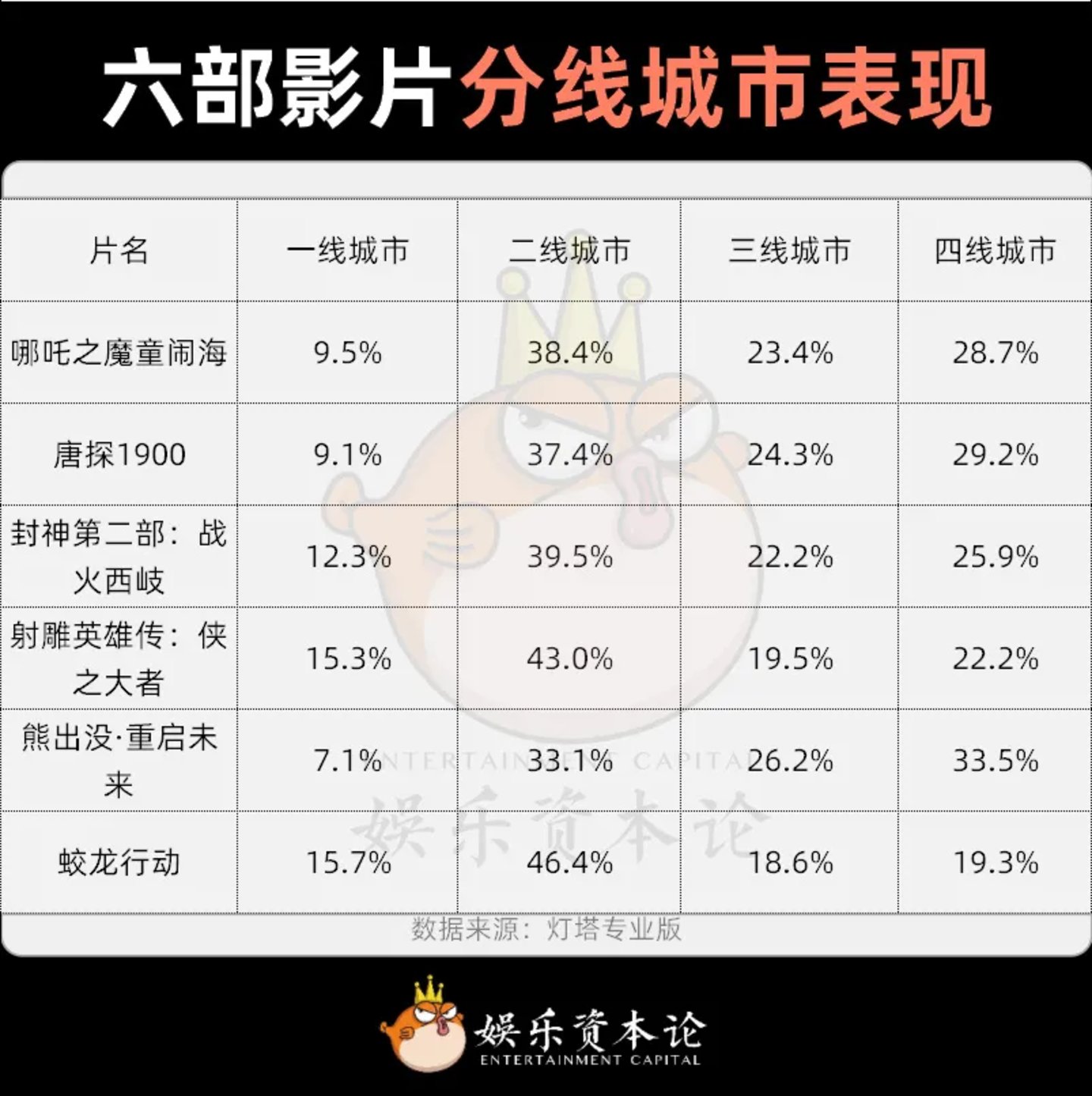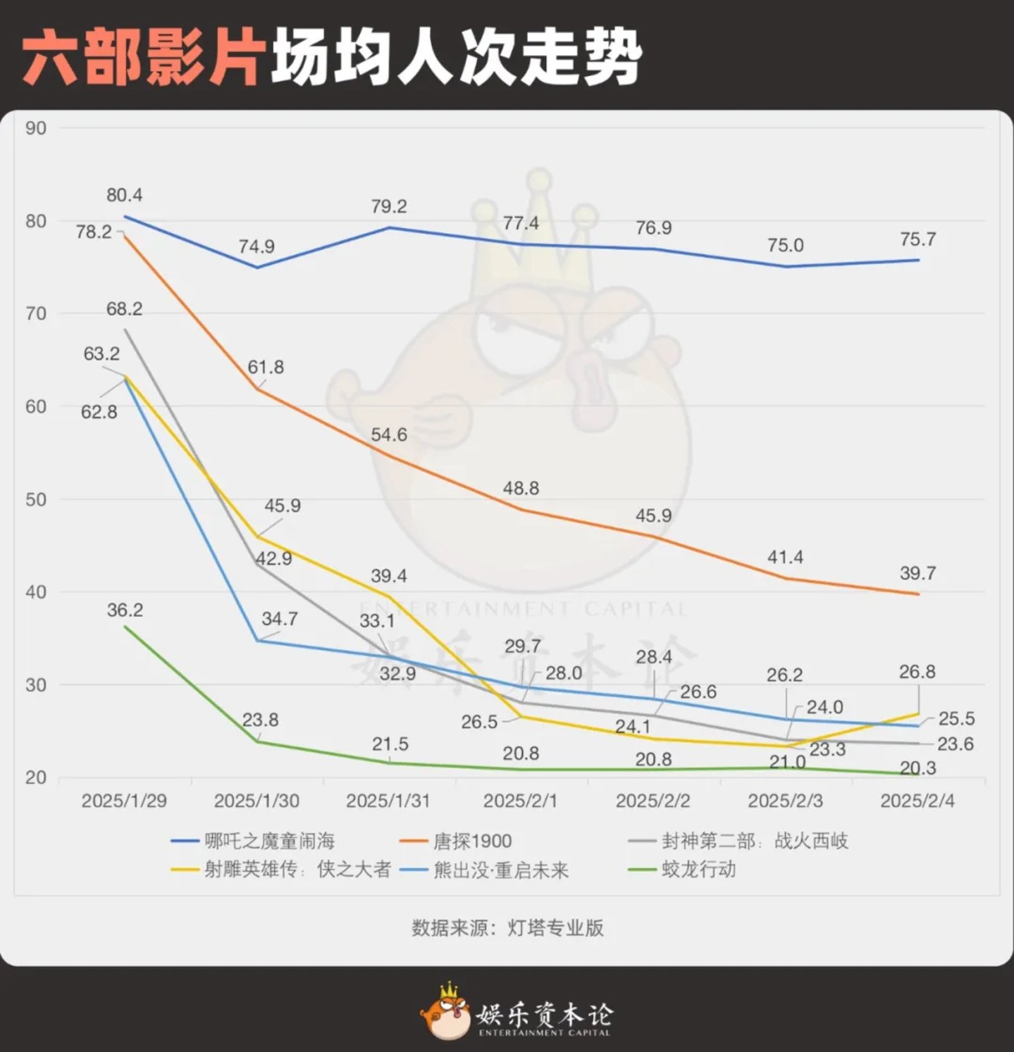 哪吒:赢家通吃。在院线最开始押注的《哪吒之魔童闹海》、《唐探1900》、《封神第二部:战火西岐》的三强格局中,《哪吒》远超预期,《唐探1900》符合预期,《封神2》低于预期。