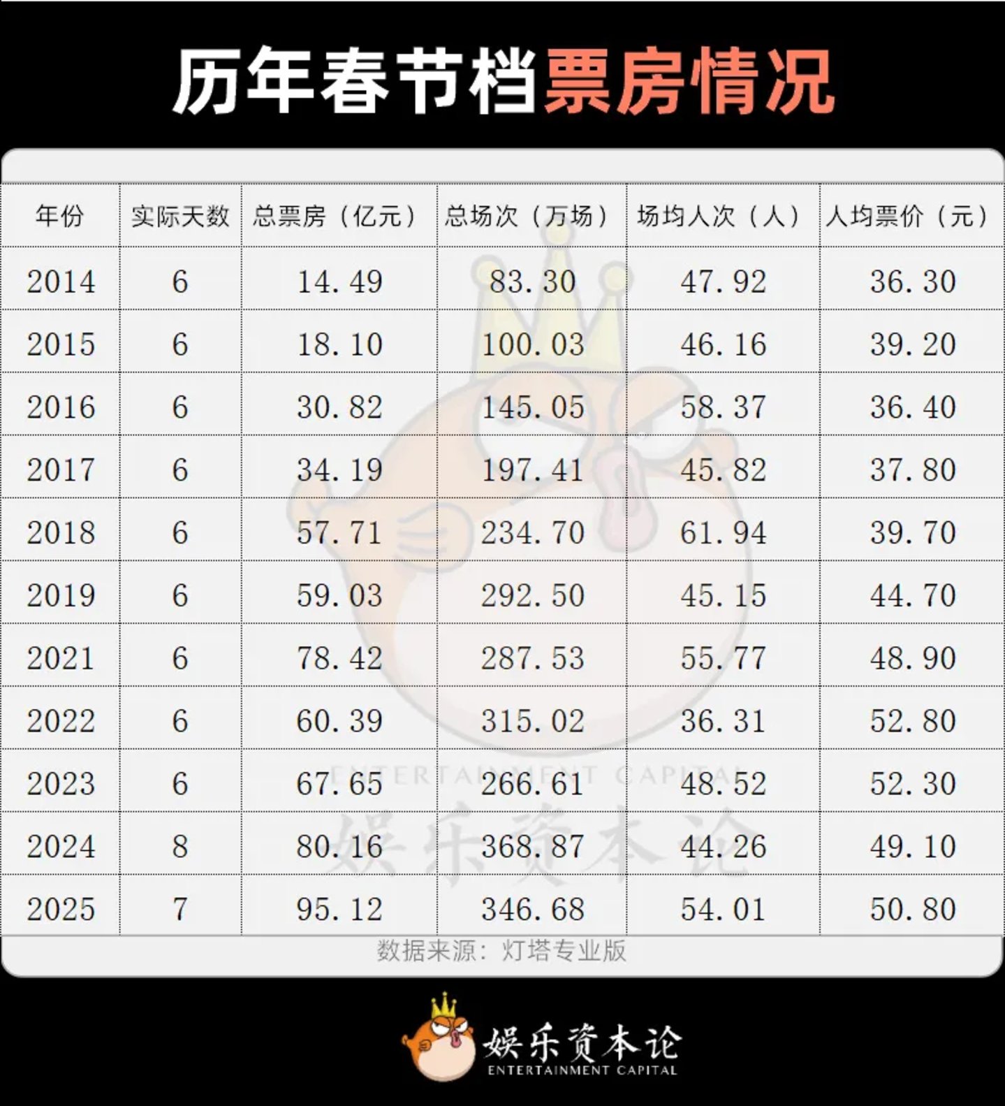 今年春节档刷新记录,是场次、场均人次、票价共同回升的结果。如小娱此前预测的一样,由于票补退坡今年春节档的平均票价较去年有所回升,但低于2022和2023年水平。