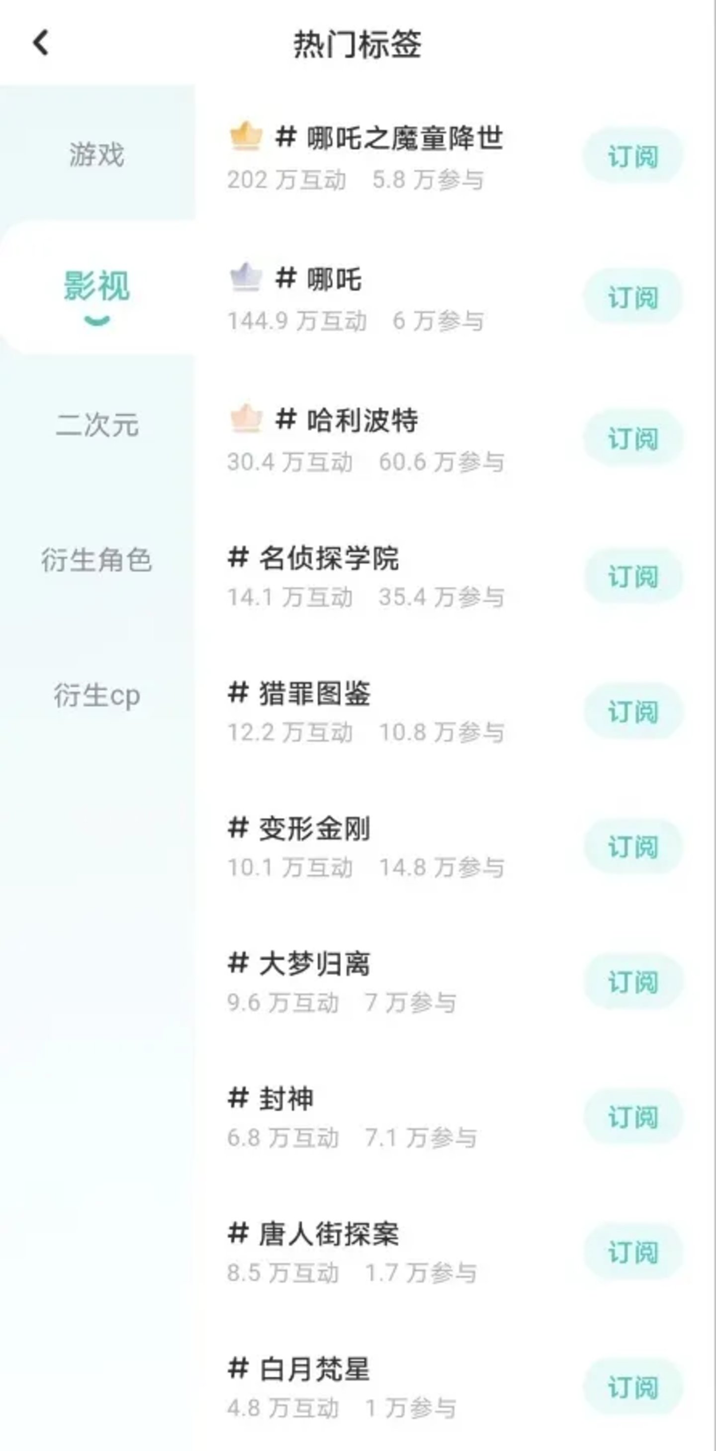 在前几日的讨论度维护中,“藕饼同人女们”可谓功不可没:#藕饼#以超13万超高热度登顶微博动漫超话榜,《哪吒》IP相关标签登顶Lofter除游戏以外影视、二次元、衍生角色、衍生CP全部榜单。#哪吒之魔童闹海#、#哪吒之魔童降世#、 #哪吒#、#敖丙#等标签的互动和参与量,都远超#封神#、#唐人街探案#。