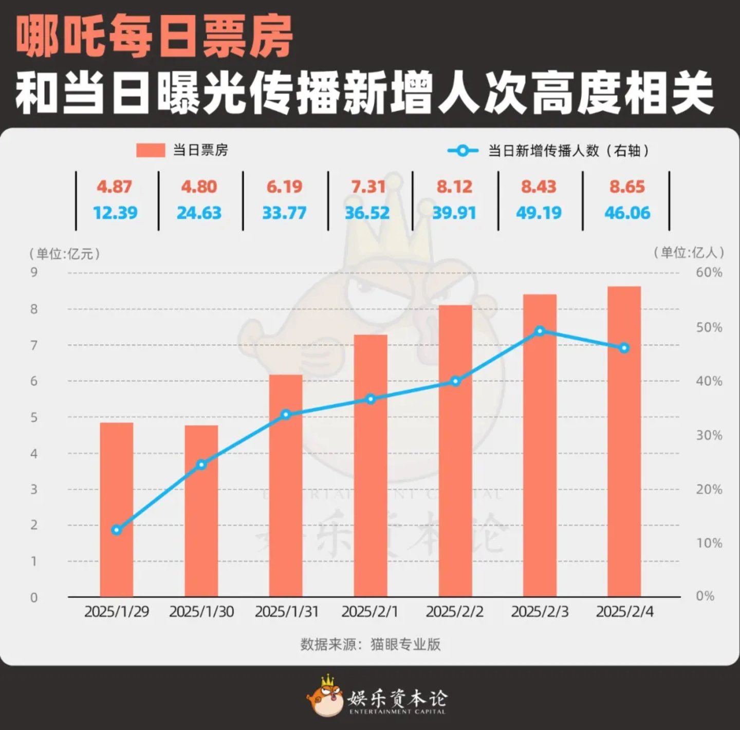 图8 哪吒每日票房和当日曝光传播新增人次高度相关 数据来源:猫眼专业版