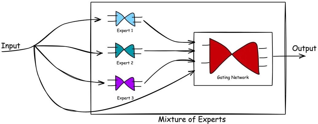 MoE架构将复杂问题分解为多个子任务,由不同的“专家”网络处理。这些专家是针对特定领域或任务训练的小型神经网络,例如语法、事实知识或创造性文本生成。