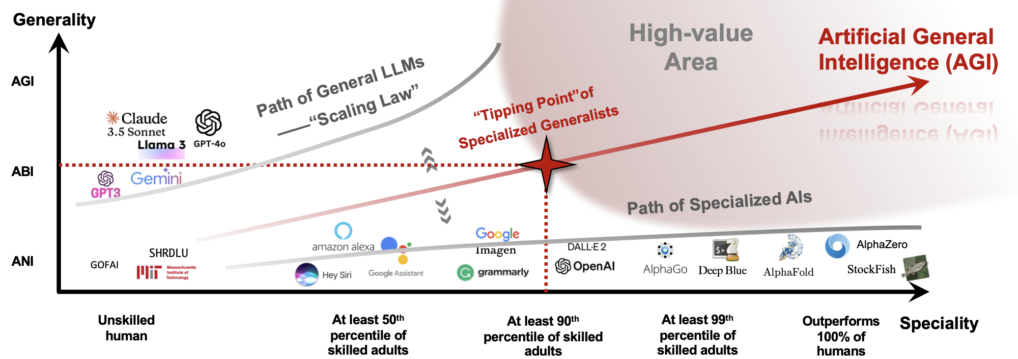 可以看到,目前对于世界知识进行压缩的发展路径正在自然演进,但这之上的专业能力,才是现阶段AGI皇冠上的明珠。因此,“通专融合”将是一条必然的路径。