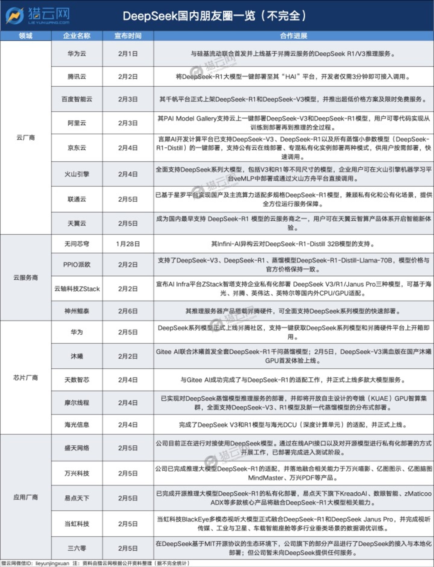 截至目前,DeepSeek“朋友圈”的企业可一分为三来看。