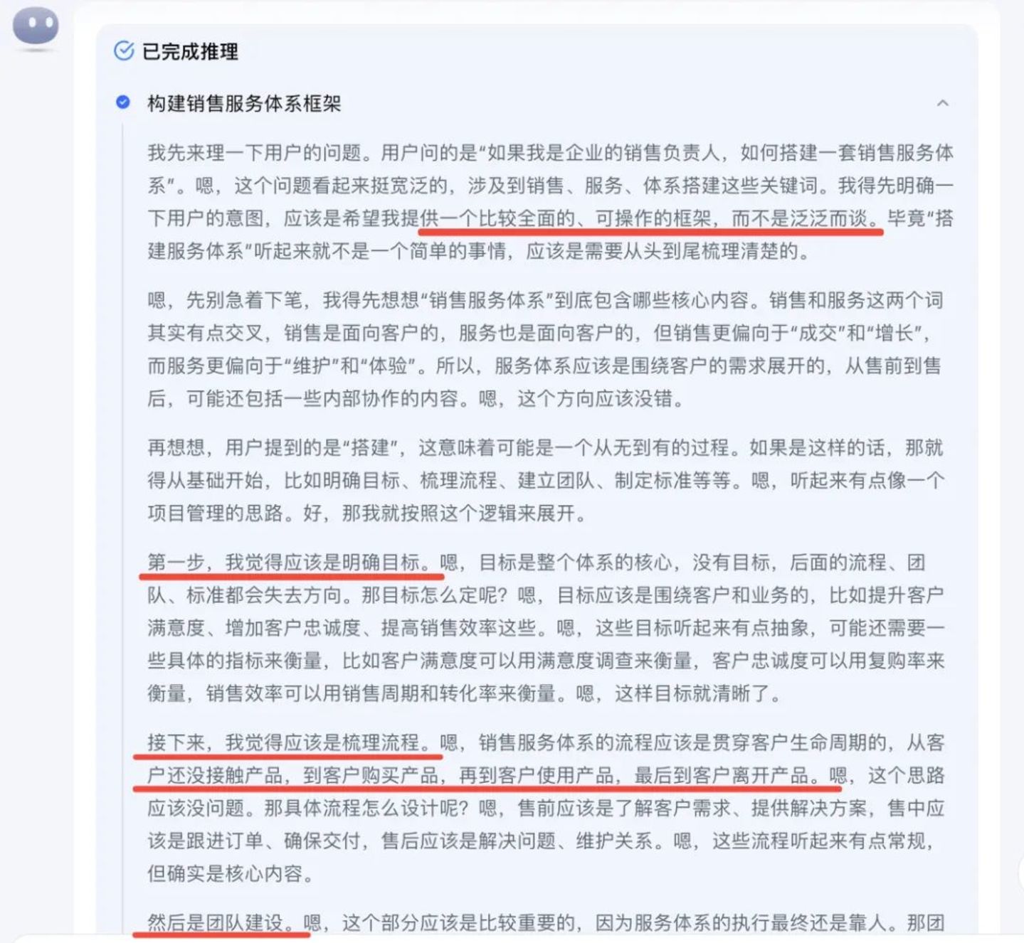 DeepSeek R1 、Kimi 1.5 这样的推理模型,会把思考过程呈现出来,这给了我们拆解业务流程SOP非常大的启发。