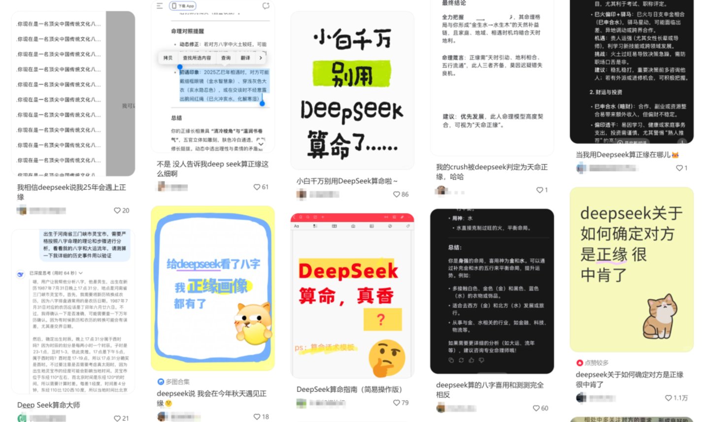 在社交媒体构建的虚拟世界里,DeepSeek 的算命结果就像长了翅膀一样迅速传播。