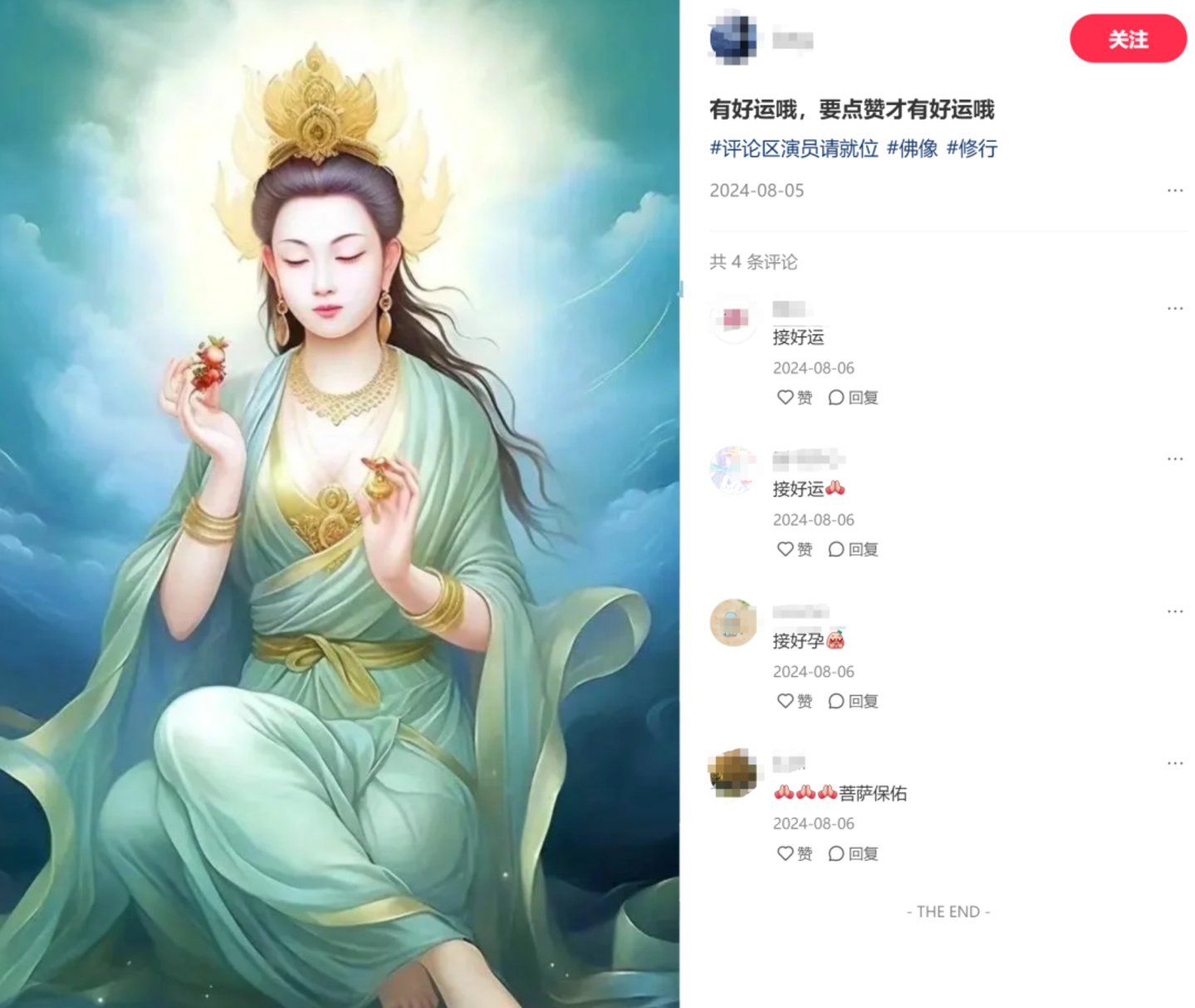 甚至,“看到佛祖图片点赞就能获得一年好运” 这样的起号方式,在行业内也屡见不鲜。