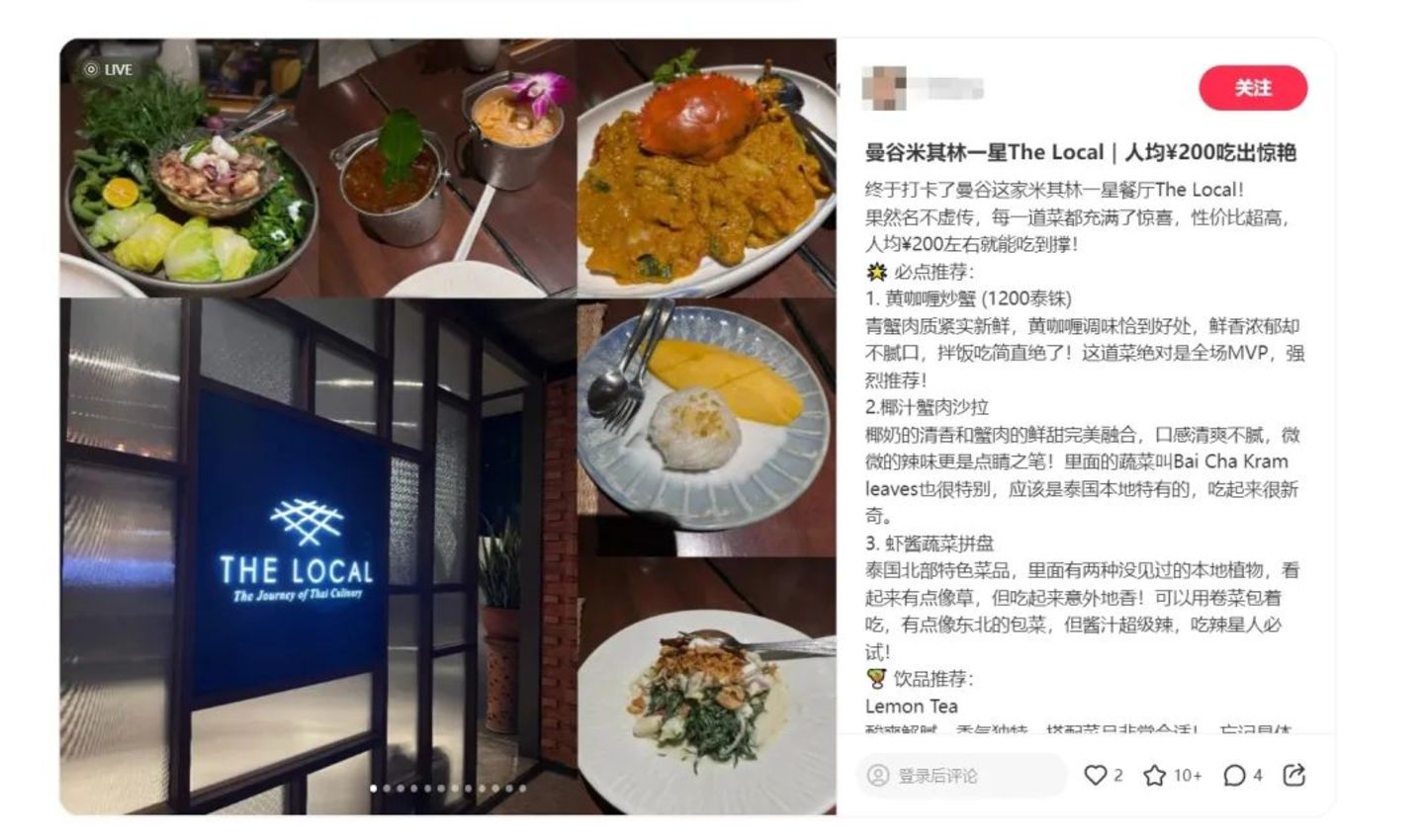同样5天前IP在泰国的Chris也在自己的社交媒体上透露,曼谷许多商圈的春节气氛,甚至比国内注重城市形象的一二线城市还热闹(相比较,北京沿中轴线往南街道上,也就每根电线杆子的中国结能散发出来点春节气息),男女都穿着喜庆的大红衣服。这样的氛围下,他在曼谷吃着冬阴功、烤海鲜,游客不少,其中在商圈和饭店里见到了不少中国人面孔。