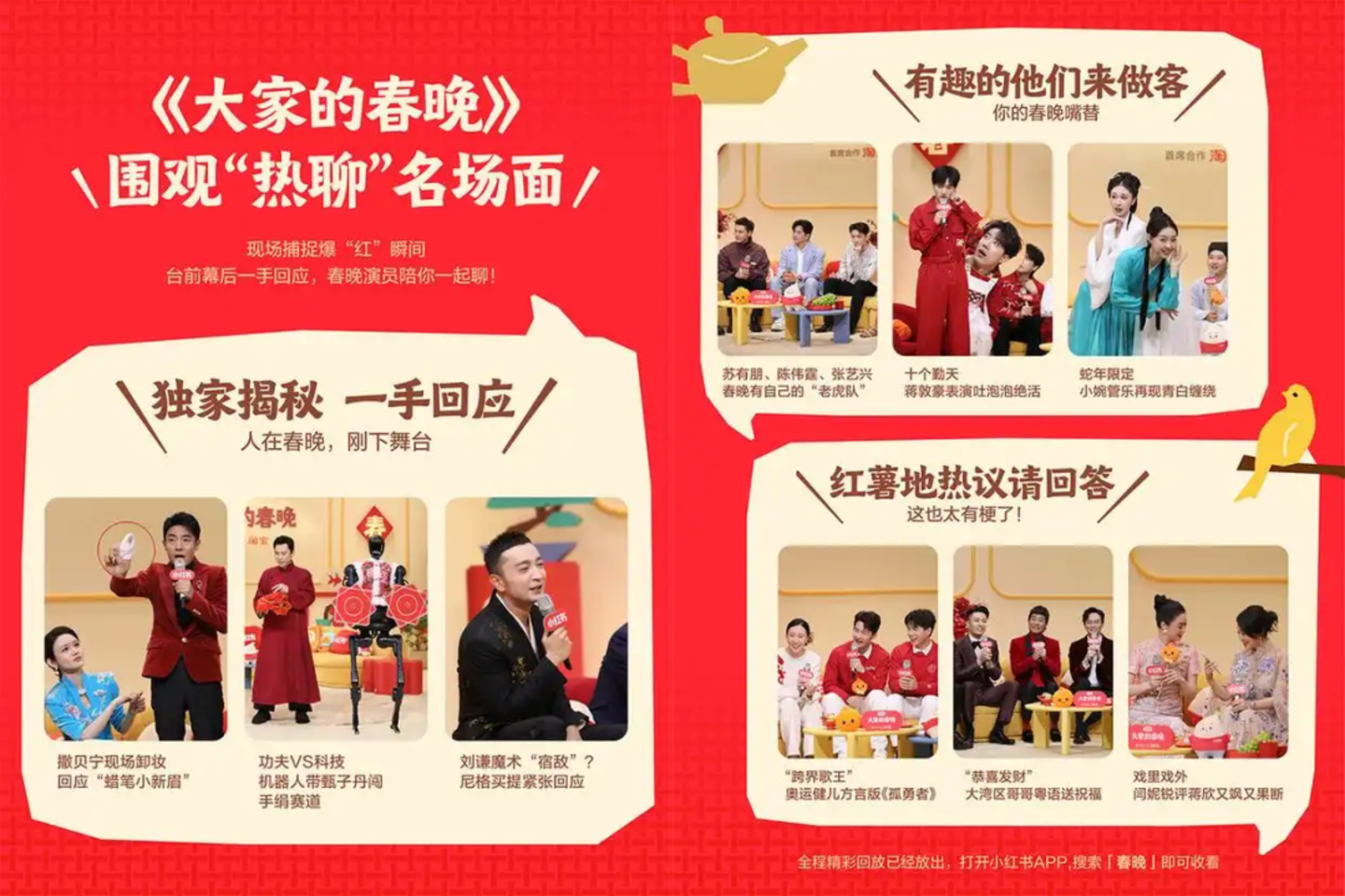 小红书则延续了去年《大家的春晚》独家直播节目,把镜头搬进春晚后台,通过连续多小时的直播,让观众有机会近距离了解演员演出背后的故事和酸甜苦辣。另外,小红书还推出了“一年一度春节庙会”系列活动,涵盖上百场直播,刷短剧、call明星、逛集市、看电影等多个板块一应俱全,通过“笔记+直播”强化了与用户间的情感互动。