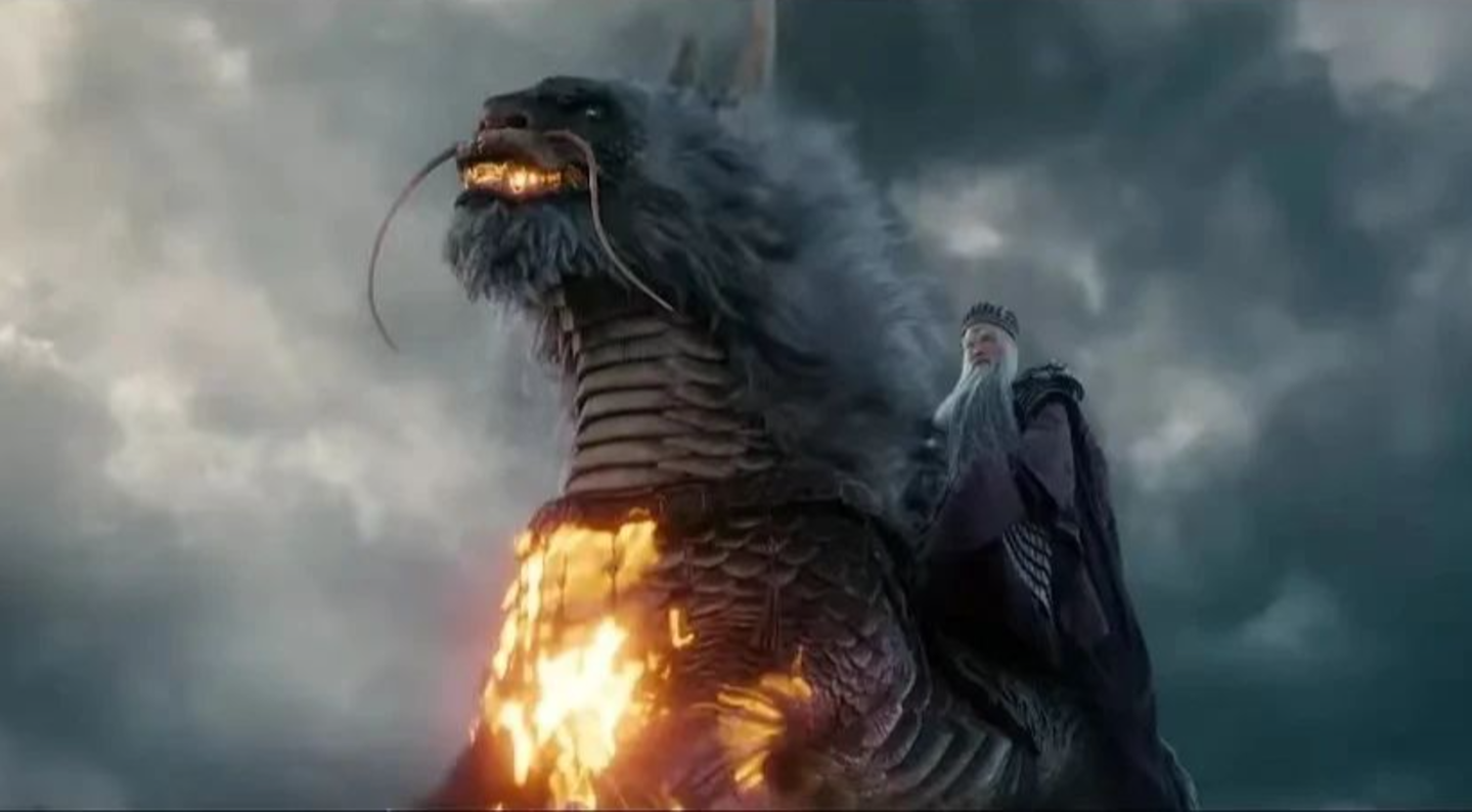 关键在于,《封神2》的特效远不只有“蓝精灵”。实际上,正片中“殷郊法相”的出场段落只有三次,殷郊本身也并非《封神2》的戏眼,而只是其中一位战斗伙伴。在殷郊之外,比如纯特效打造的角色雷震子,相比第一部肉眼可见地更加精细化了;魔礼青的青云剑,以金属块的方式幻化成龙;闻仲的坐骑墨麒麟,身体上毛发与火焰并存,都是非常栩栩如生的视效呈现。仅仅因为一个被无限放大的“蓝精灵”就对《封神2》的整体质感进行根本否定,是有失公允的。
