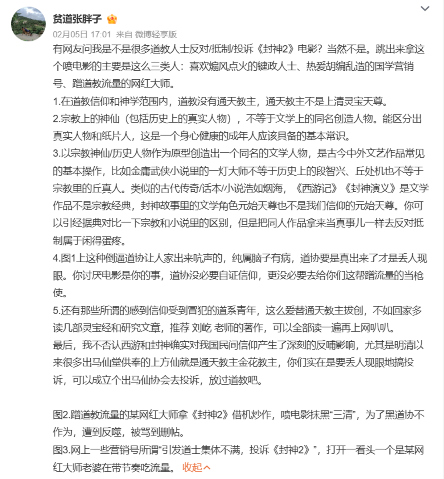 更荒诞之处在于,对于人物设定的不满,愈演愈烈,随后竟然发展成了又一“猎巫”行动。一些打着道士幌子的人士,声称《封神2》的角色塑造涉嫌侮辱道教,甚至向道教协会发起投诉。引得真正的道教人士出来澄清辟谣,直指“能区分出真实人物和纸片人,这是一个身心健康的成年人应该具备的基本常识。”