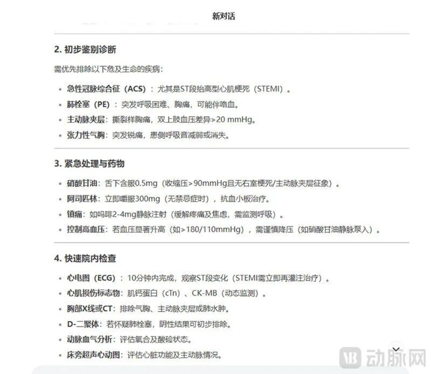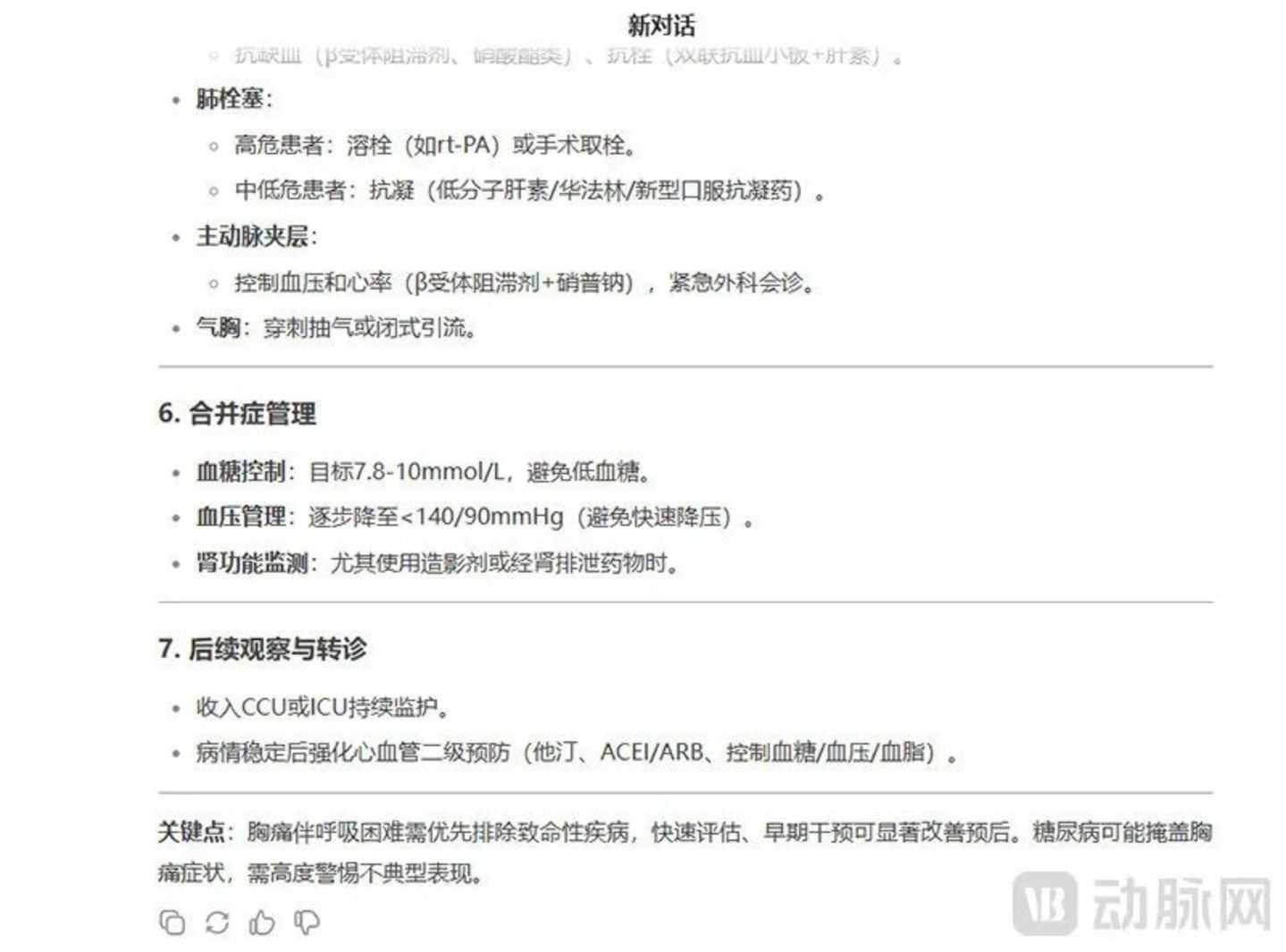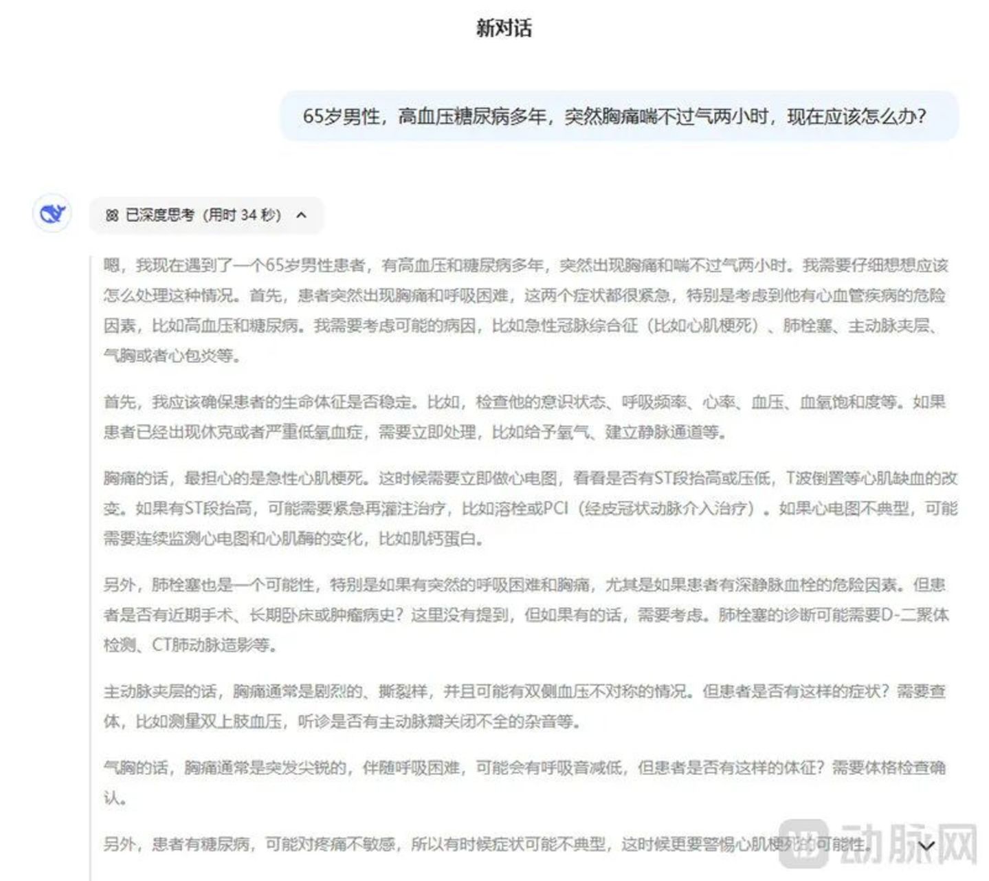 “从这个例子中我们可以看出,DeepSeek能够从模糊主诉中提取关键临床特征,随后自主构建符合医疗规范的决策树,并在识别潜在风险后给出防御性医疗建议,最后将碎片化信息转化为结构化诊疗方案的能力。”他补充道。