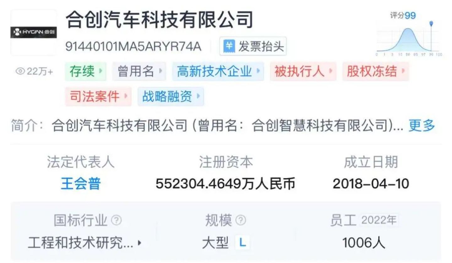 从背靠广汽、蔚来,全年销量接近2万辆,到“查无此车” 并列为失信被执行人,合创仅短短两年便走向陨落。天眼查信息显示,合创汽车成立于2018年4月,仅仅7年时间,便从一家颇具潜力的公司变为被执行人,股权也被冻结,不免让人唏嘘。
