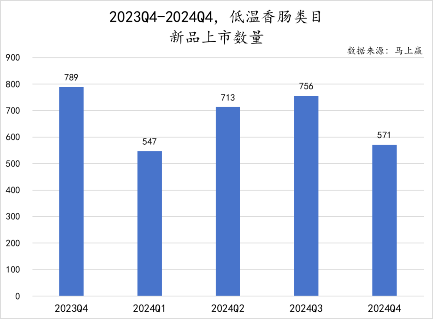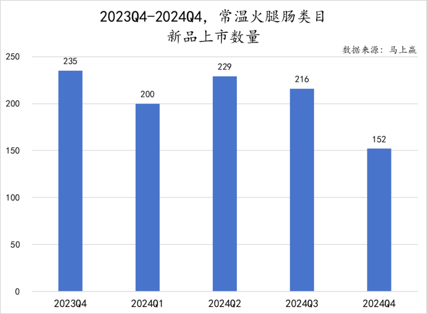 从新品上市数量来看,低温香肠类目新品上市数量呈现波动趋势,2024Q4的新品上市数量同比2023Q4则有较大幅度下降。