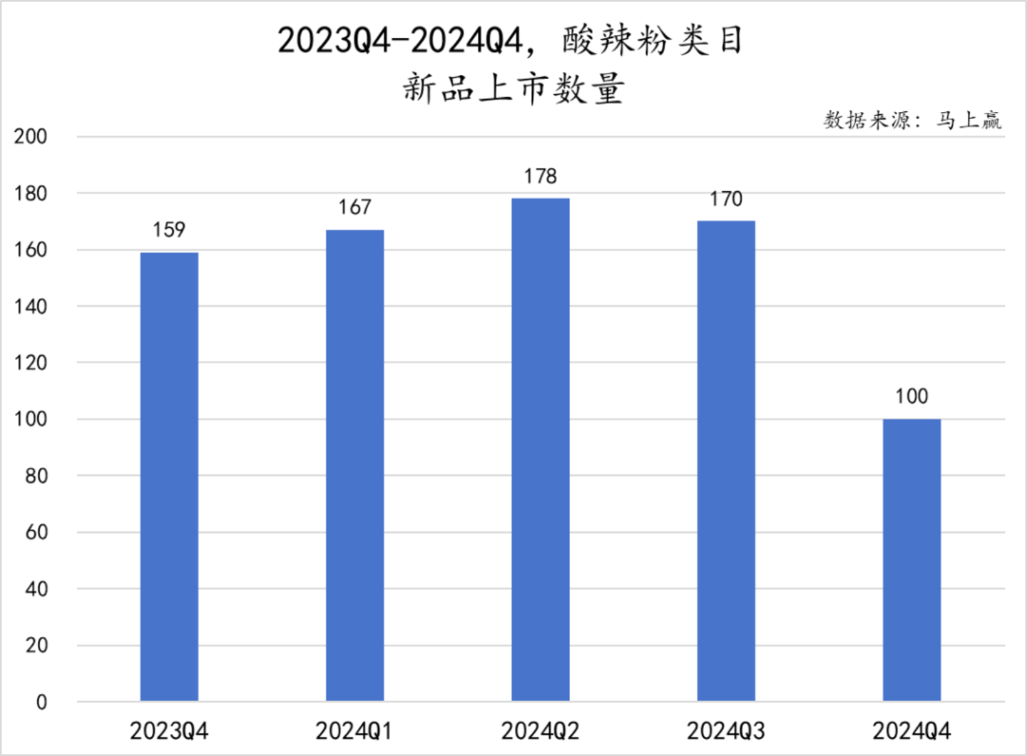 从新品上市的情况来看,酸辣粉类目的表现虽不够亮眼,但在前四个季度都保持稳定推出,2024年Q2新品数量达到峰值,而2024年Q4的新品上市数量显著减少,仅推出100款,类目新品的活跃度有明显的减退。