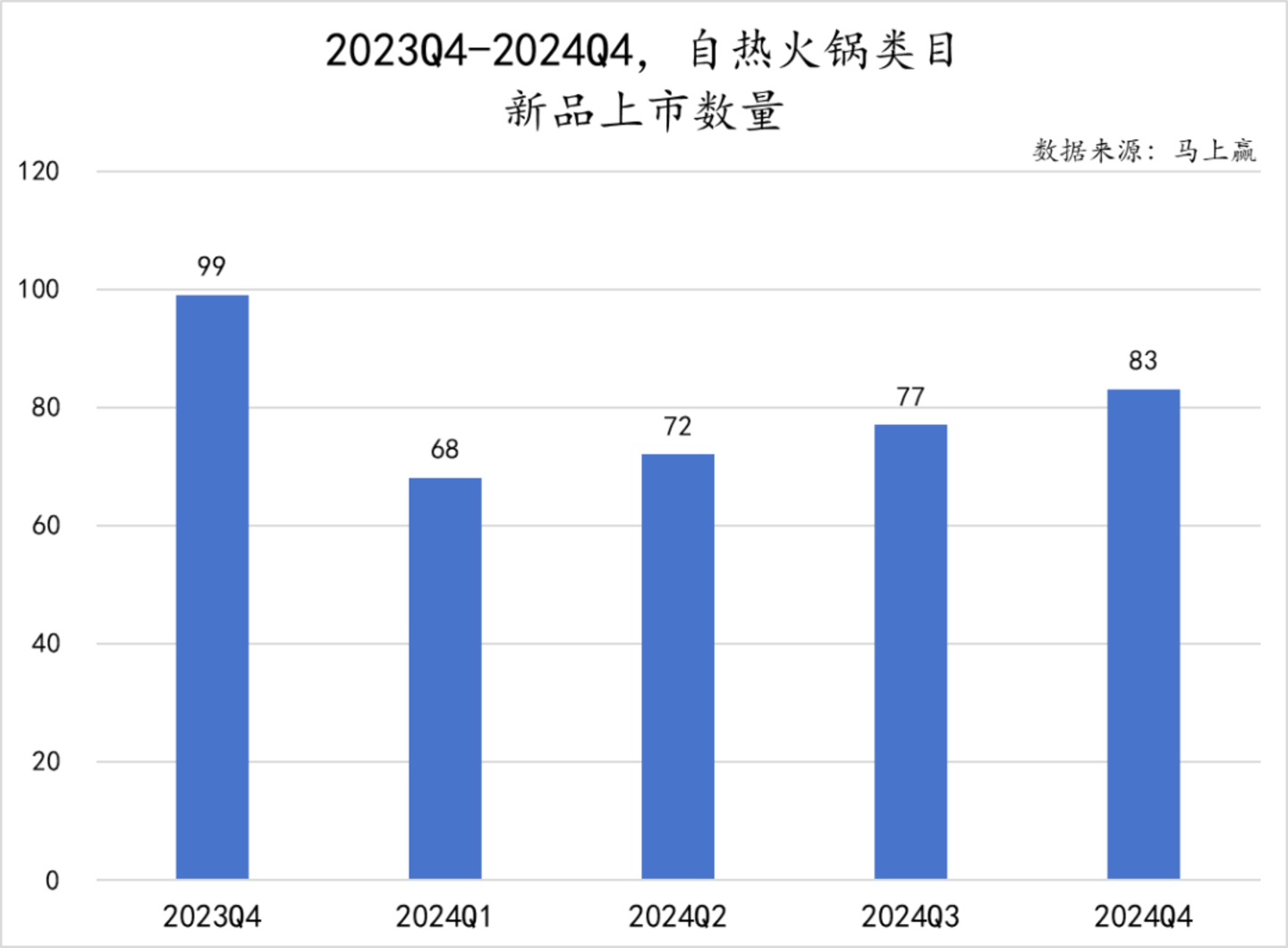 2024Q4,自热火锅类目中,CR5集团的市场份额合计为83.73%,整体集中度较高。各集团市场份额情况上,颐海国际、莫小仙和田小花的市场份额同比有所上升,而自嗨锅、众人火的市场份额则同比下降。