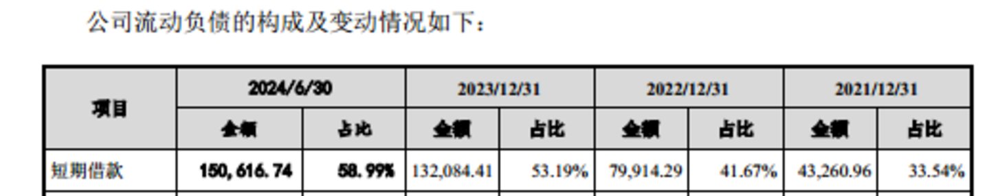 而当看到利来智造的短期借款时,这一疑问却瞬间被解答。在上述时间段内,利来智造的短期借款分别为4.33亿元、7.99亿元、13.21亿元、15.06亿元,也就是说,利来智造的货币资金始终不够支付公司的短期借款。而这或许也是利来智造需要大举募资补流的主要因素。