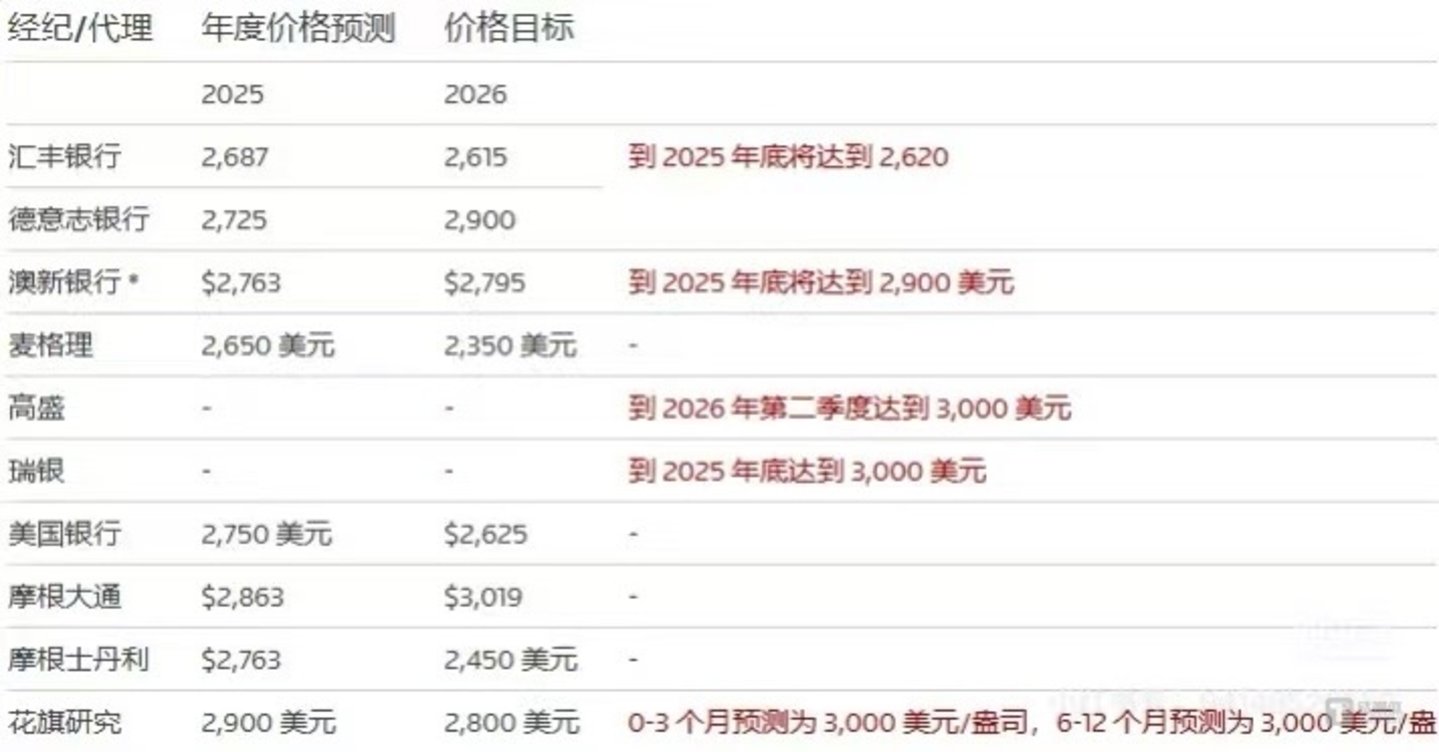 根据最新各大外资机构给出对于黄金的预测,最激进的花旗是3000美元/盎司,花旗分析师表示,在特朗普2.0时代,黄金牛市将继续下去,美元升值将加大新兴经济体央行增持黄金以支撑本币的动力,而投资者将转向实物黄金和交易所交易基金。保守的麦格理则预测2025年一季度黄金可能会降到了2650美元/盎司,但他们也表示了,如果中国需求回升,或特朗普的政策导致美国财政前景恶化,金价可能迅速挑战3000美元/盎司大关。甚至一直看多黄金的高盛对短期金价发出了预警,如果关税不确定性消退且持仓正常化,预计金价将出现战术性下跌,金价可能从现在回落至2650美元/盎司。综合来说,外资机构短期内都不再狂热黄金,回调可能“近在咫尺”。